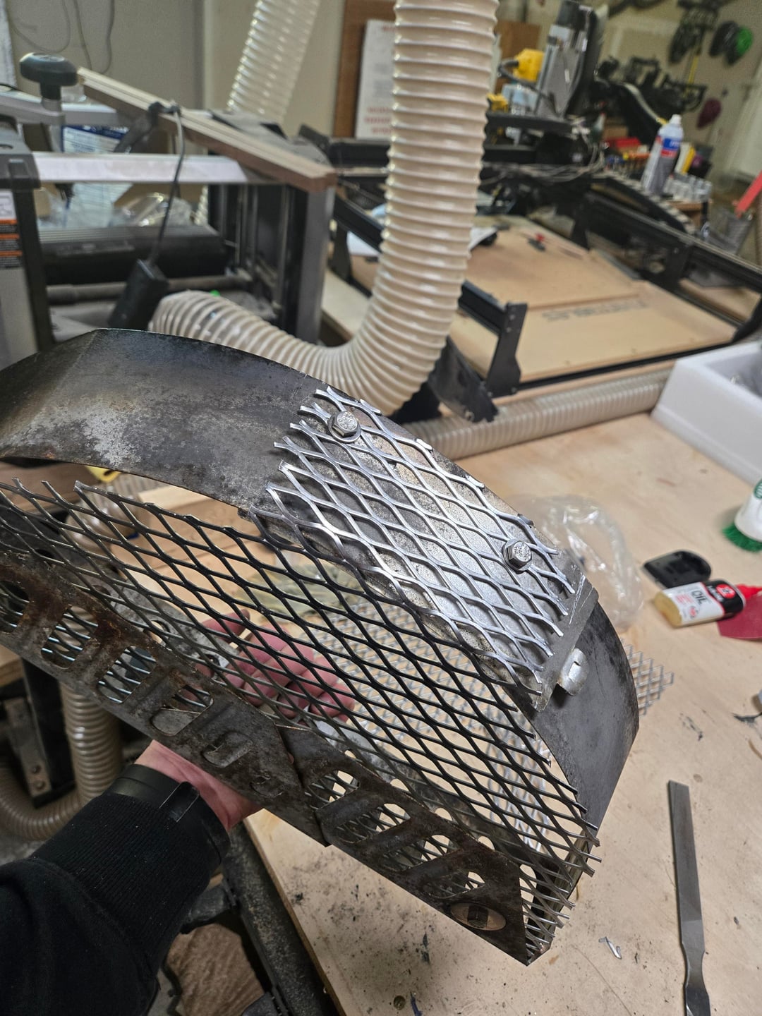 Picked up some expanded steel and cut to shape.by PM_me_ur_launch_code 2 Comments Efficient_Ad5475 2 hours ago lol nice vaguelysticky 2 hours ago I made one too, a tip for next time go to Harbor freight and get a five dollar rivet gun, it makes it where there’s nothing for anything to hang up on