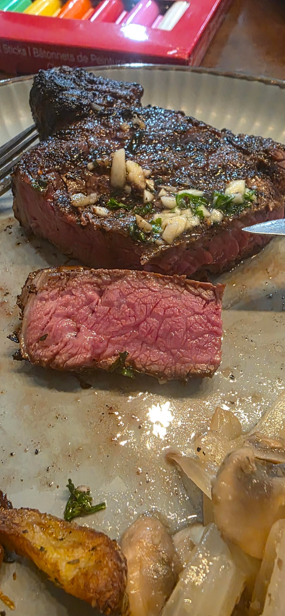 Cooked a couple steaks tonight on the charcoal grill since it was in the mid 40s tonight