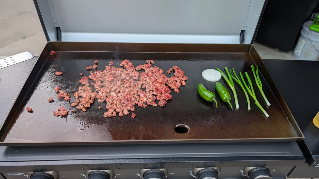 Made some Carne Asada tacos on my griddle the family got me for Father's day. Rounded them out with homade rice and beans.