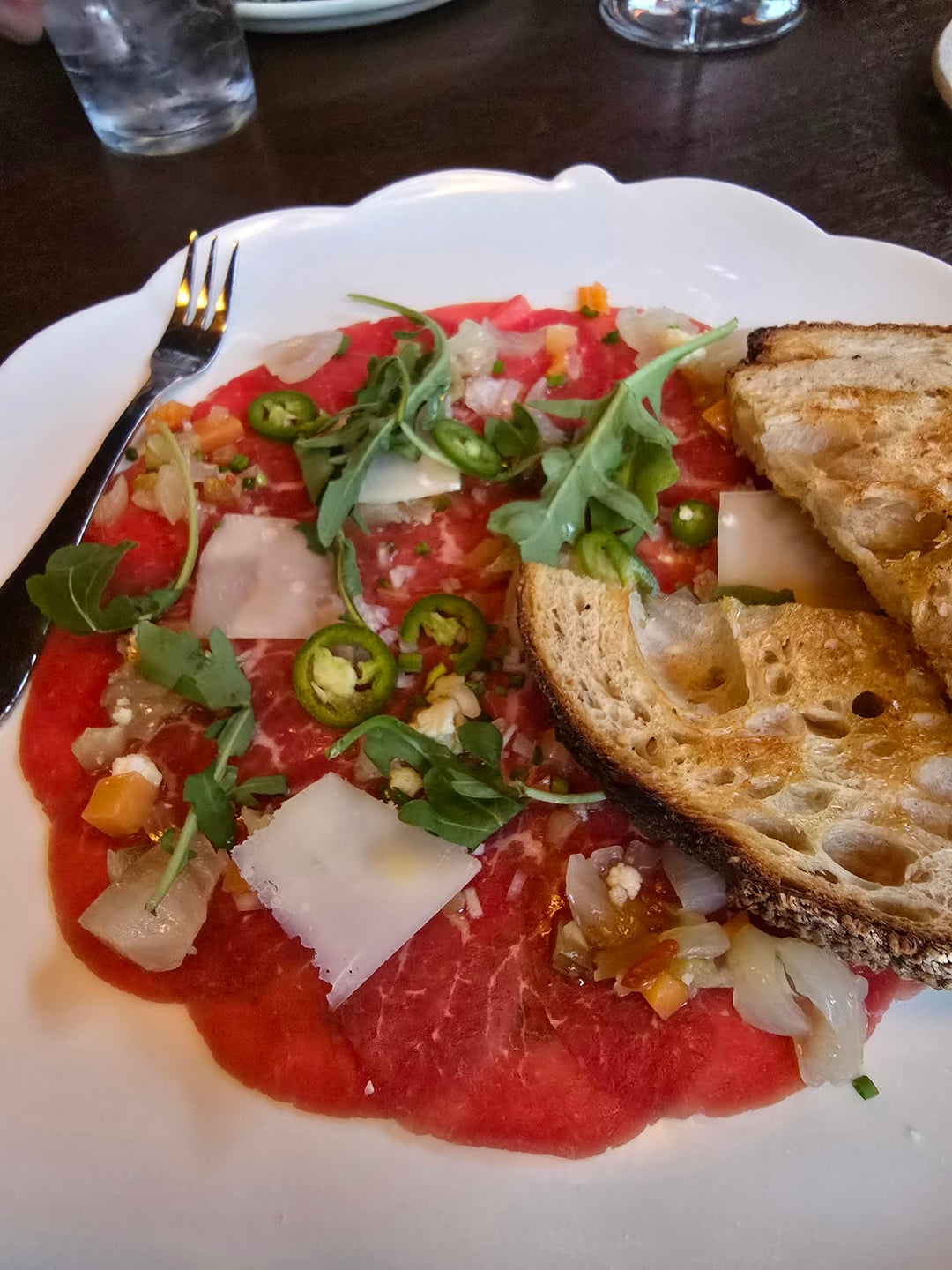 Orecchiette Tarantino with sausage, tomato cream, pecorino.Beef carpaccio with giardiniera.Meatballs. by tengo_hambre999 Dining and Cooking