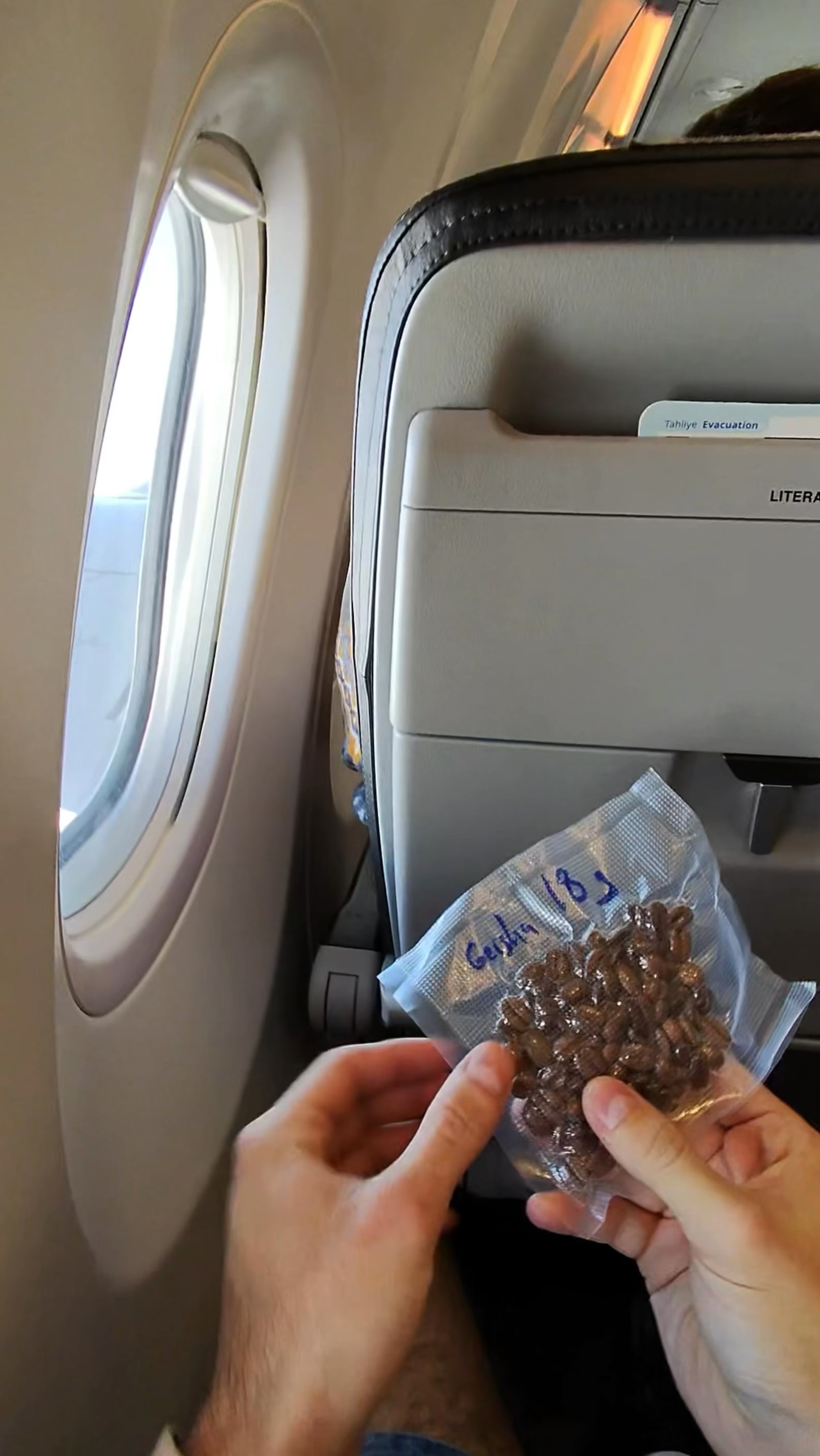 *guy opens 18 grams of vacuum packed beans on a plane & proceeds to grind and brew all while wearing a Go-Pro*