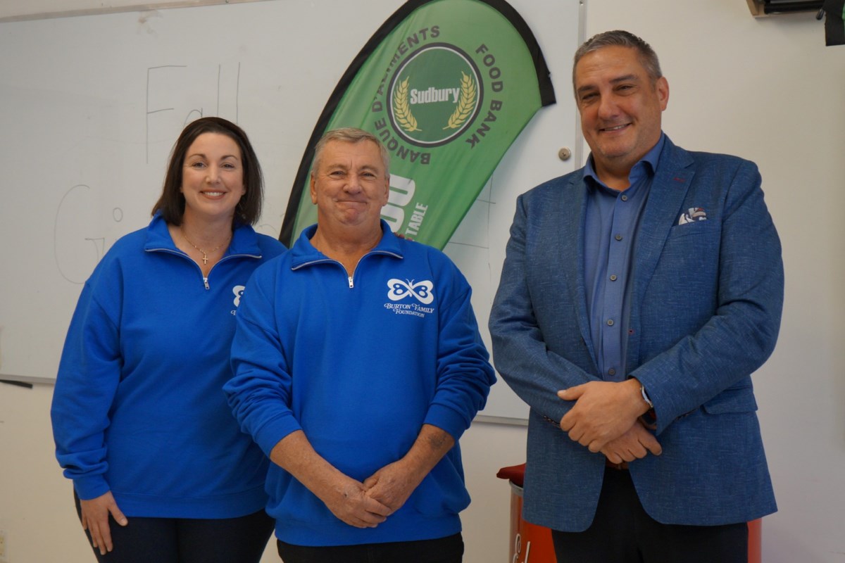 A donation of $10,000 from the Burton Family Foundation kicked off the Sudbury Food Bank’s annual Edgar Burton Christmas Food Drive, with the gift described by the co-chair of the event as “a perfect statement” of the Burton family’s work to “feed a need that is growing every year.”