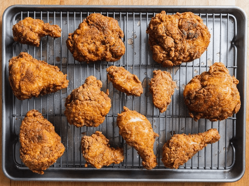 The preparation is super easy, just dip chicken pieces in the egg and milk mix and then give it a quick shake in flour.