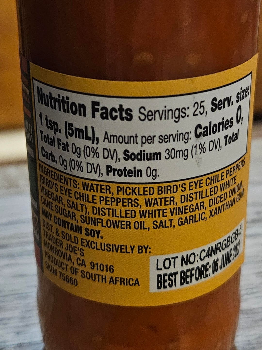 So you out there that doesn't like vinegar, this may not be for you. It's basically a Piri Piri sauce. It has 3 flavor profiles IMO. The chilie, garlic and vinegar. It does have good bright note up front, the Chiles are pickled before being added, you taste the garlic then the chilie hits. More of a medium heat. Would say a 5-6 out of 10. The vinegar isn't anywhere at the level of Louisiana styles like Tabasco or Crystal. So may be good for those wanting to lean into the vinegar based sauces.