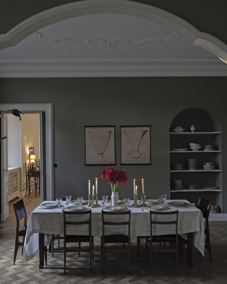 Mimi’s entertaining philosophy is about abundance and warmth. Think candlelight everywhere, oysters to start, champagne always at the ready, and a centerpiece built from chestnuts, persimmons, or a tumble of onions and lettuces from the market. It’s rustic and abundant, yet utterly elegant—the kind of magic only Mimi can create.