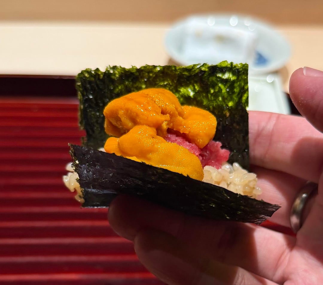11. Tuna Belly, topped by Sea Urchin | 雲丹トロ
