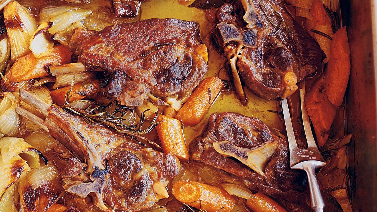 The day before, trim and braise the artichokes, but hold off on the last step of the recipe, which involves melting cheese over the dish. Prepare the polenta (or panelle), spread it onto an oiled baking sheet, cover with plastic wrap, and refrigerate—don’t cut and fry it yet. Roast the lamb and make the sauce to go with it.
