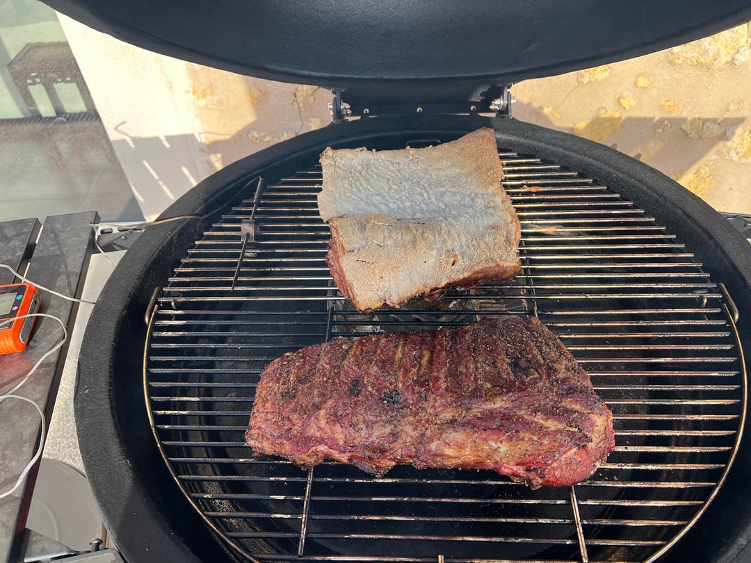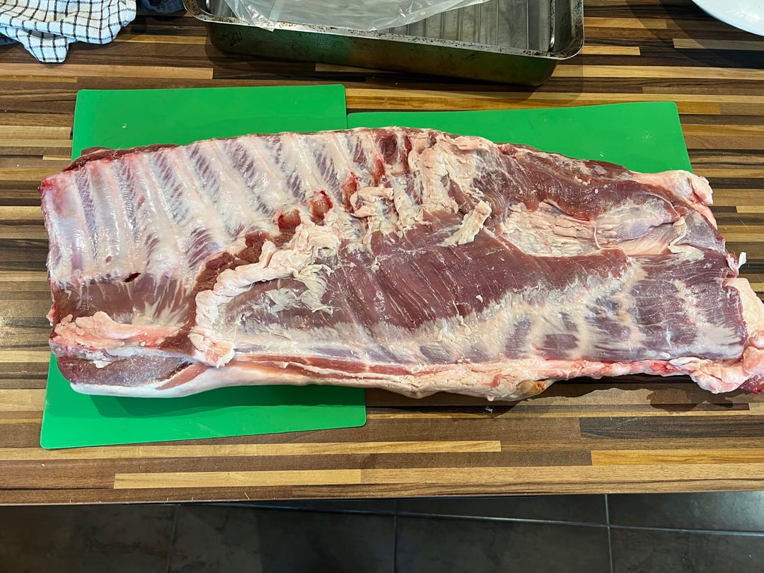 Am I looking at 3 different cuts of meat? Skin on pork belly, pork spare ribs and the some beef thingy?