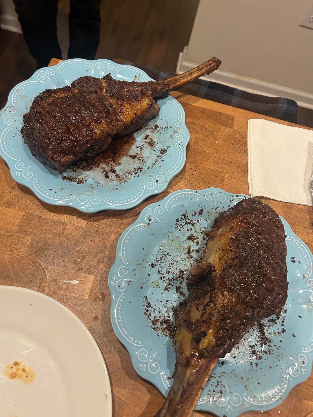 Lucked into some bison tomahawks from a friends fellow meathead dad— they hoped I could do them justice! I think we did. From frozen 4.5 hours in the sous vide at 130 followed by a salt/pepper/espresso rub and 1.5 min sear on each side on the Joe!