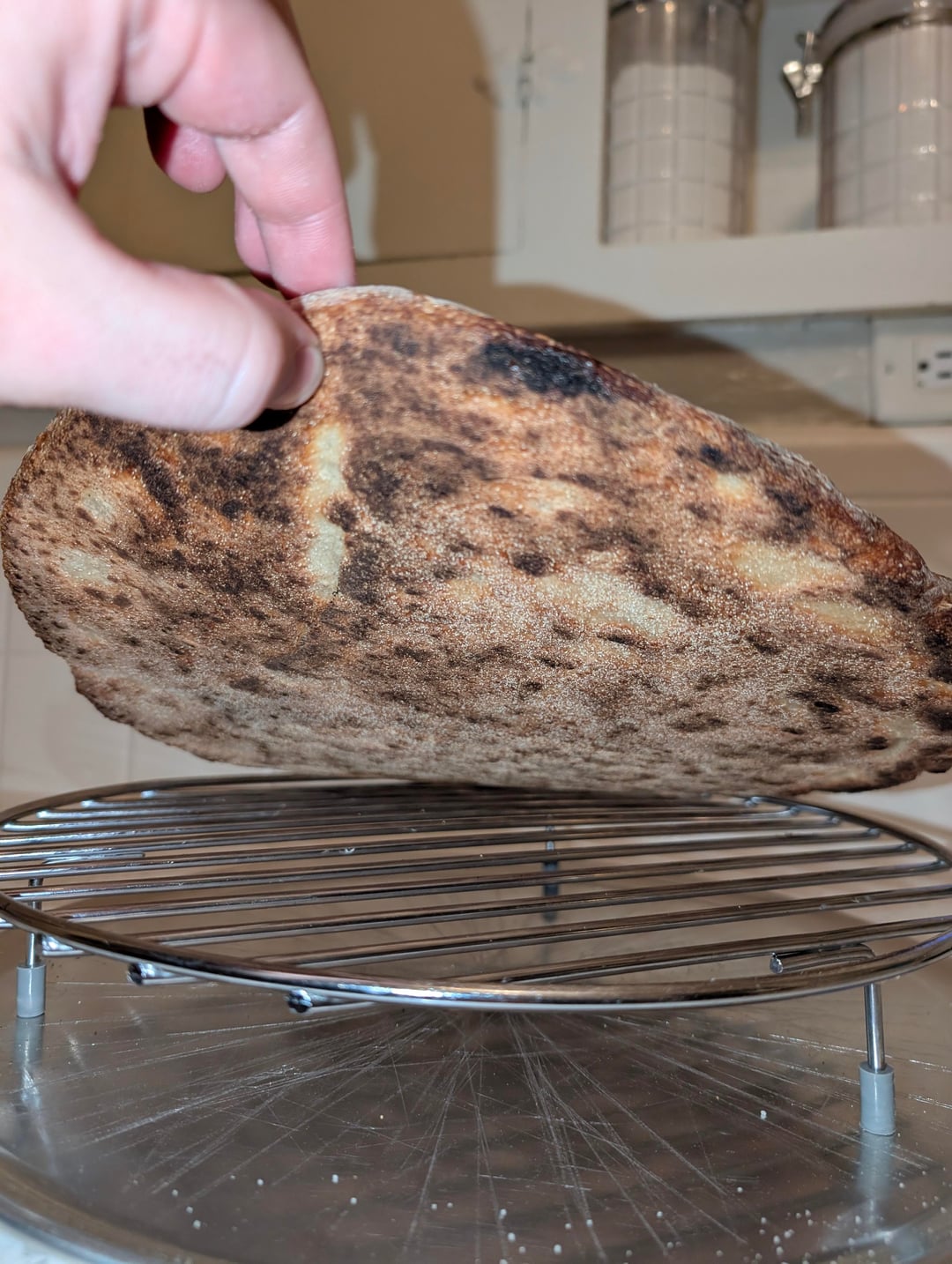 Friday night pizza night with my two year old son. Half red sauce and plain cheese for him, half white sauce and Italian sausage for me. One of my better pies. Steel was at 560° when launched, cooked for 8 minutes total with a little broil at the end. No complaints from the 2yo = success.