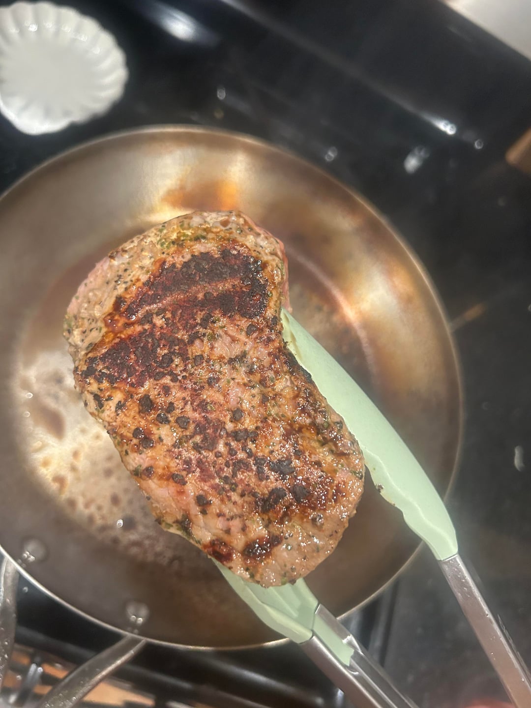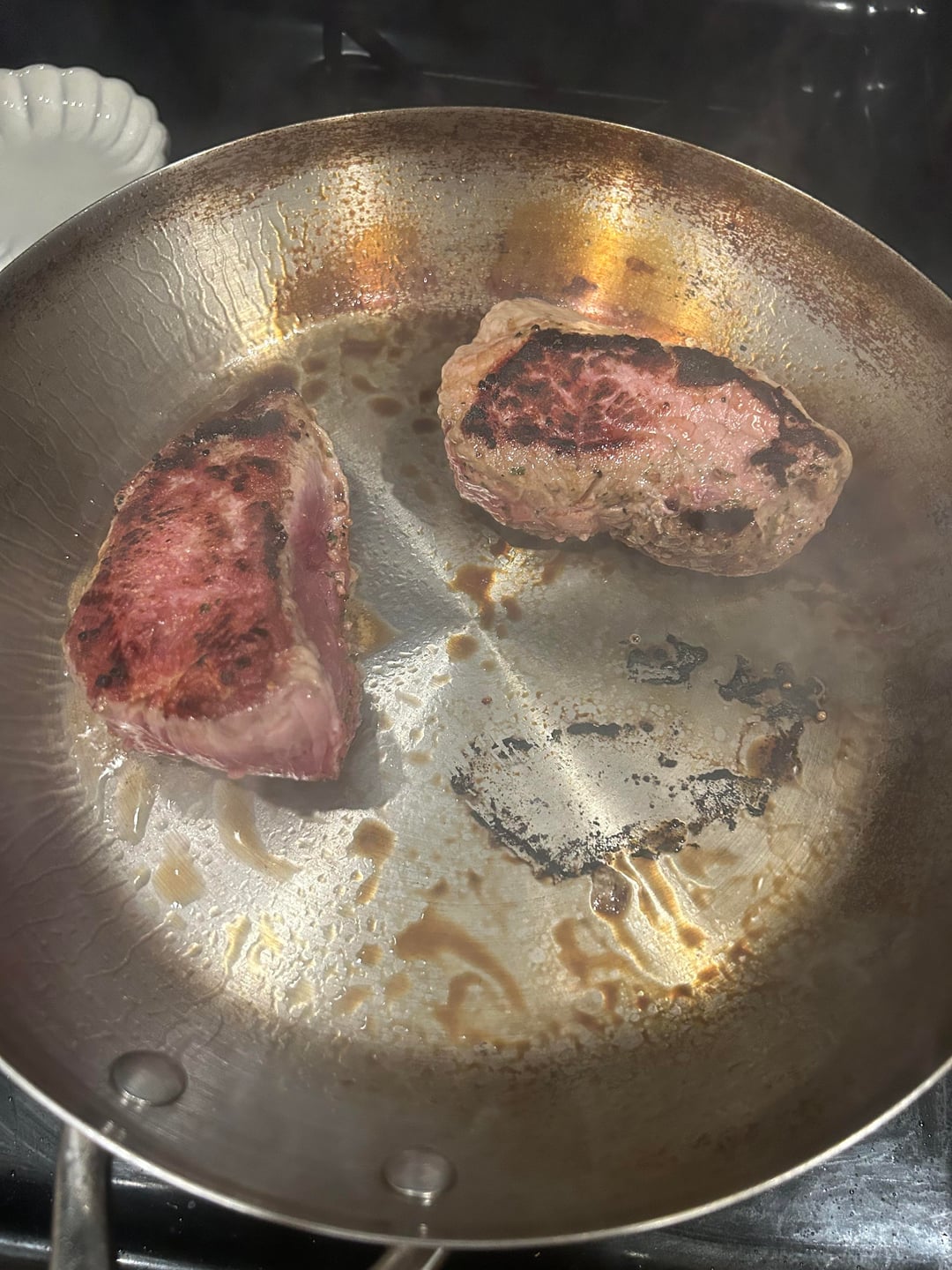 First time using a stainless steel and having some trouble. Used avacado oil spray and set my dial to 9, one below “Hi”. Steak came straight out of the fridge, little wet, didn’t have time to let them warm up or dry off. Wtf am I doing wrong.
