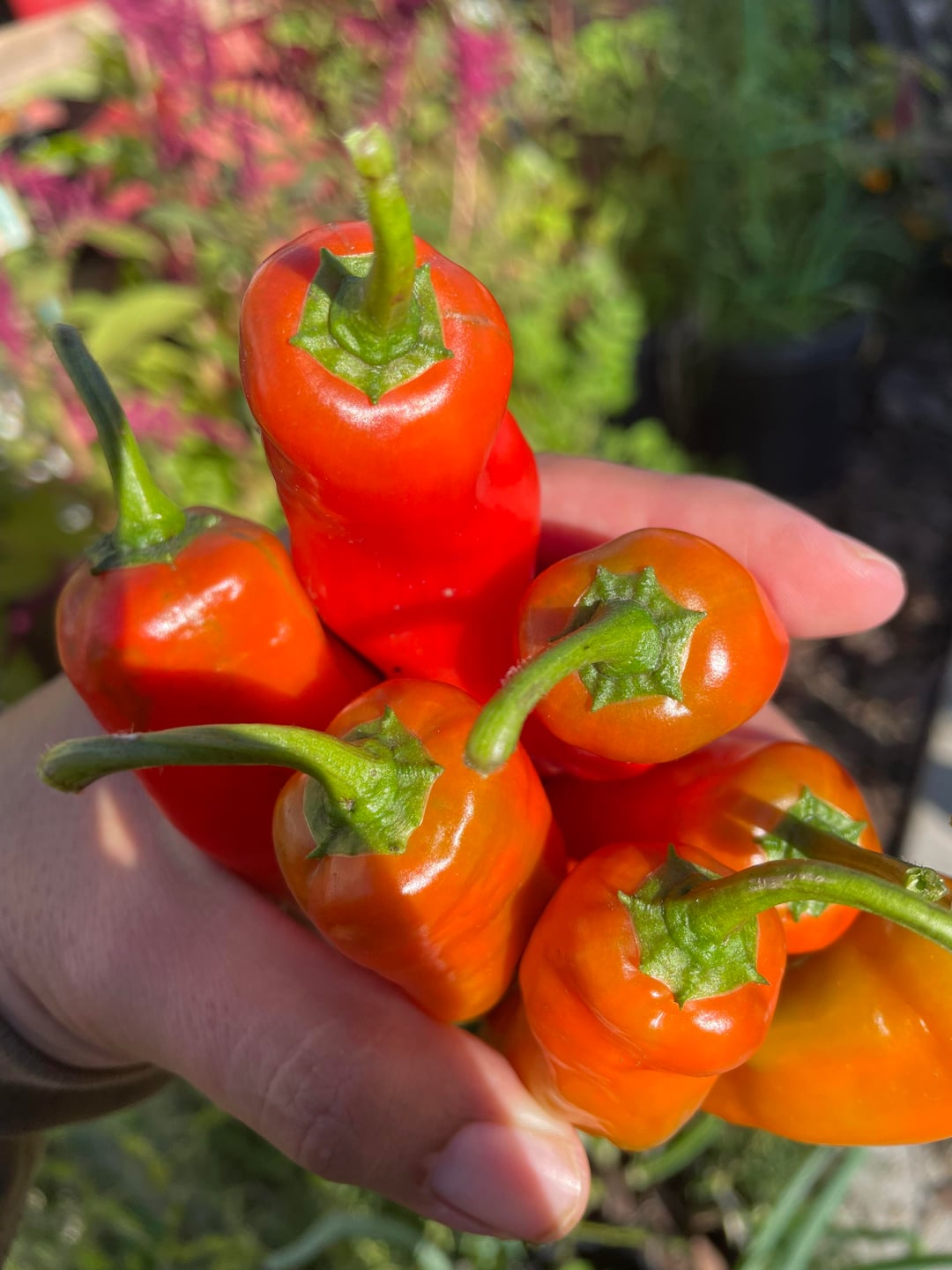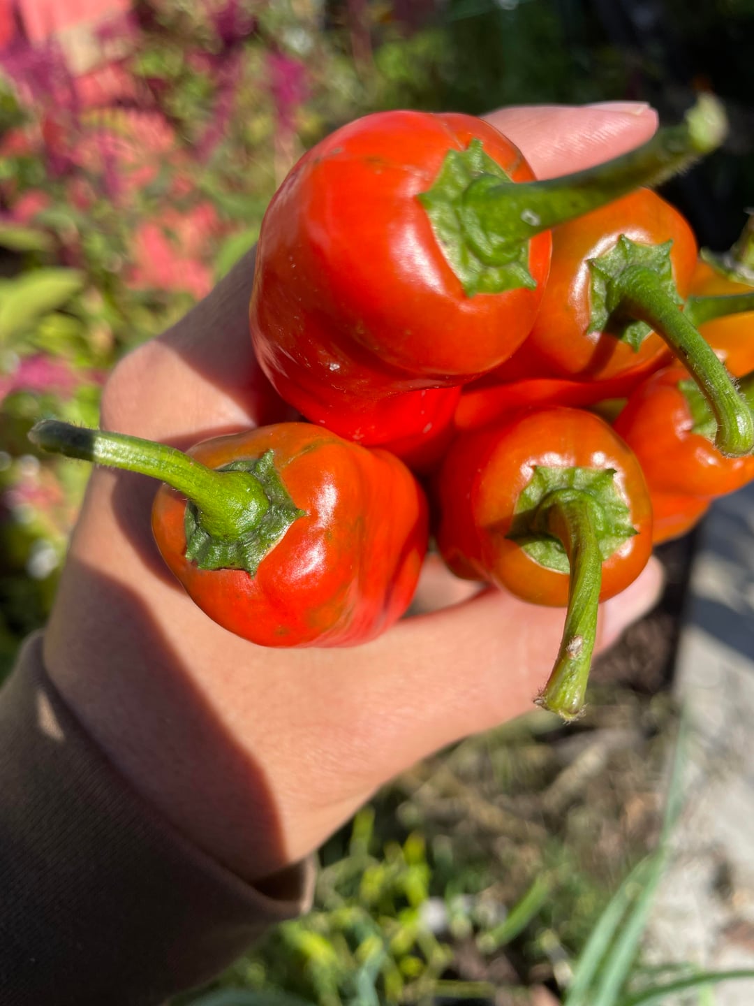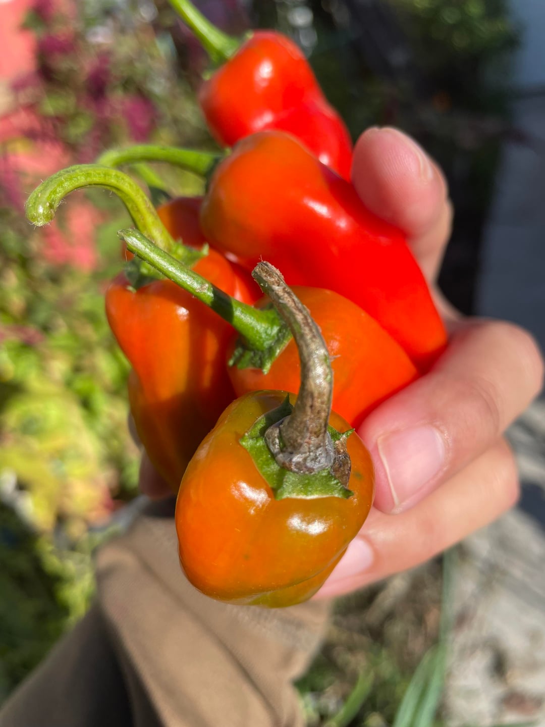 All of these plants have fuzzy leaves and stems like a Black Cobra but the fruits don’t match that all. This year I learned about the annular constriction on Chinense and since then I keep looking at the calyx on these and thinking I see circular crease but I suppose it’s Dunning-Kruger because as far as I can tell they only make one flower per node.