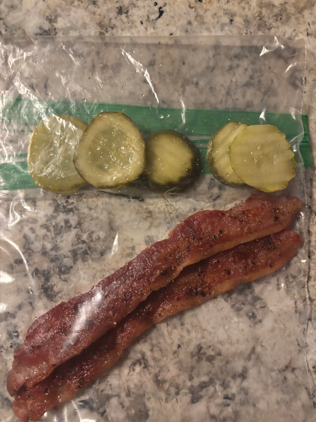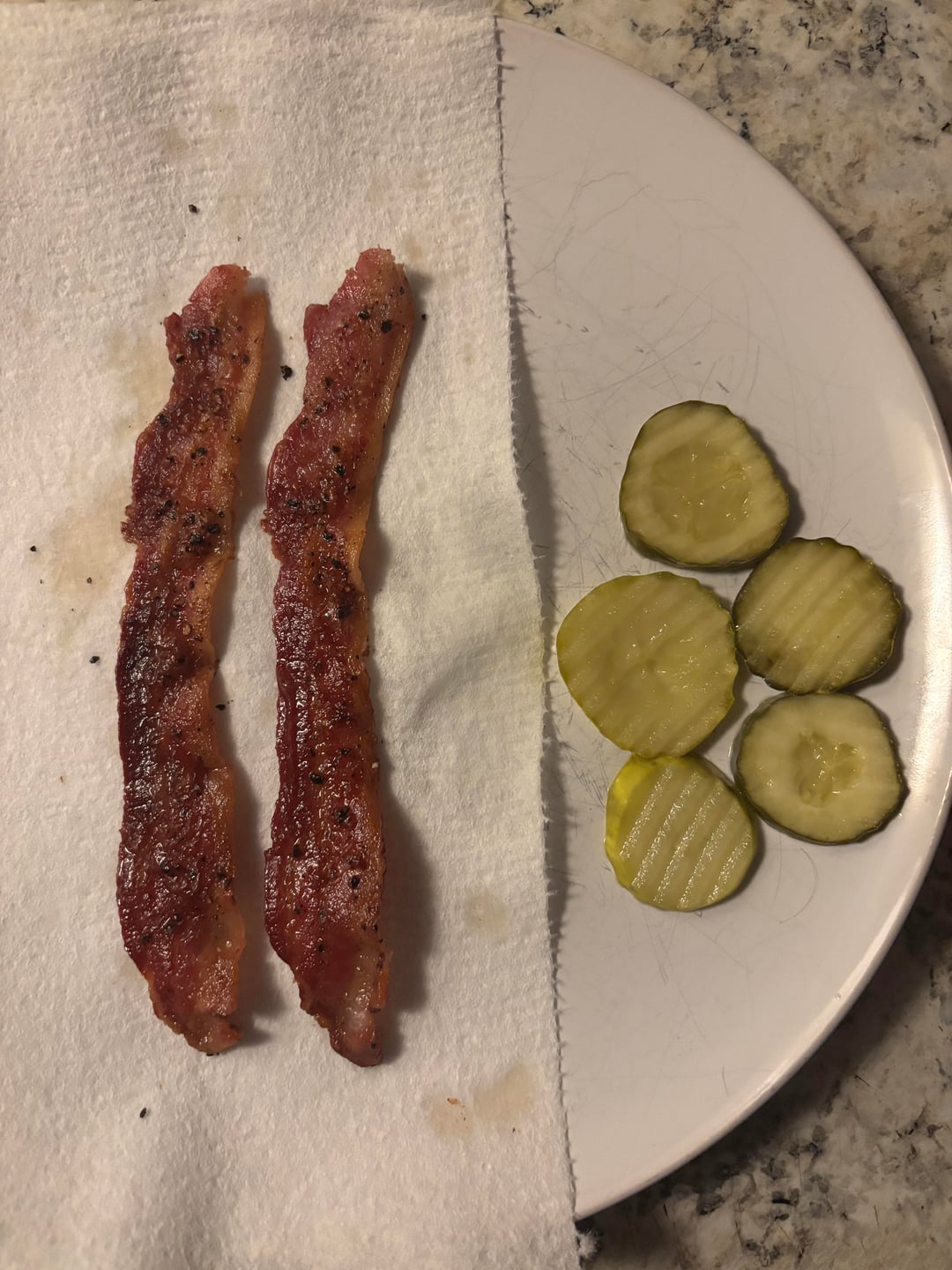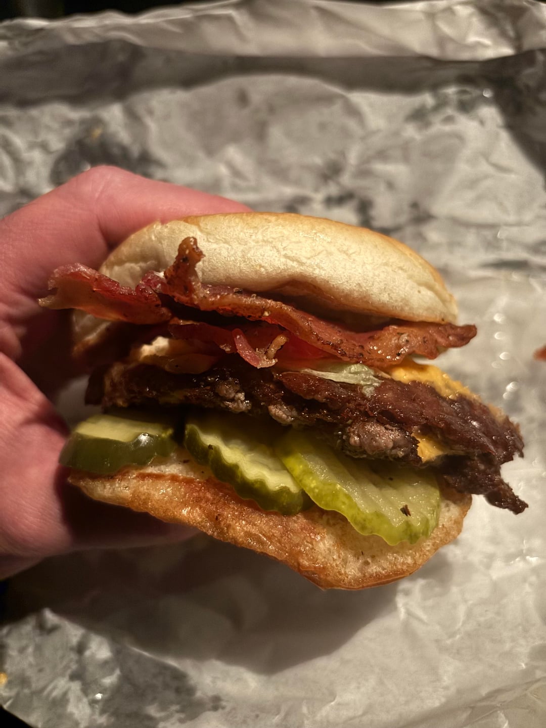I didn’t think Red Hot Ranch had pickles and I always thought that was a big miss on the almost perfect burger. I wanted bacon and pickles so I cooked it up and headed over. Funny enough while I was waiting someone asked to add pickles and I felt like an idiot with a baggie of pickles in my jacket??