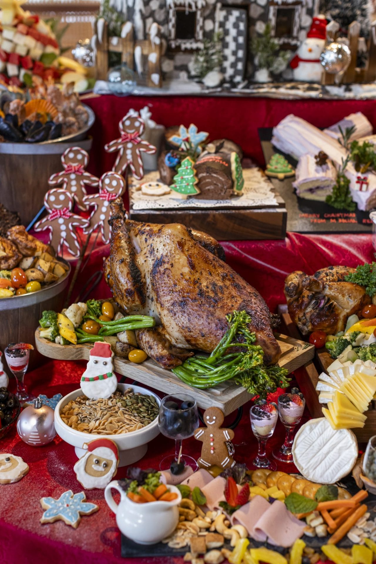 Festive dining continues on Christmas Day and Boxing Day with buffet lunches served from 12 pm to 3 pm. The menu features roast turkey, roasted chicken, pan-fried seabass and lamb stew, along with desserts such as chocolate mousse and Christmas cakes.