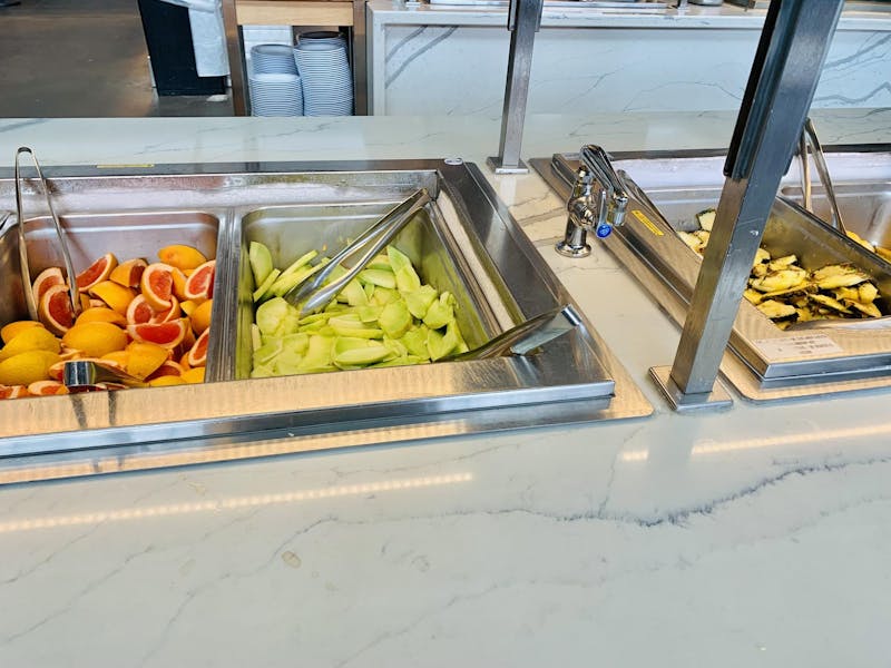 Apples, bananas and oranges play supporting roles. They aren’t usually at the center stage fruit bar, but instead, housed in wicker baskets that scatter the premises of the dining hall. Unlike melon, these fruits are displayed in their uncut entirety, highlighting size and freshness as the main determiners of their quality. For the apples and bananas, size is their most fickle trait. At times, Apples can be smaller than a palm, and at others, large enough that it’s hard to hold more than one in your hand. Smaller ones are usually covered with random bruises, and larger ones have scattered punctures. Baby bananas aren’t an uncommon sight, and neither are suspiciously long ones. They’re found in a state of immense green unripeness, or withering brown. There is no in between. Oranges are surprisingly constant, but don’t seem to be a popular option due to the difficulty in peeling them. In general, this trio is the reigning champions of the grab-and-go fruit category — fruit you’d hardly ever see someone sit down and eat in the dining halls.