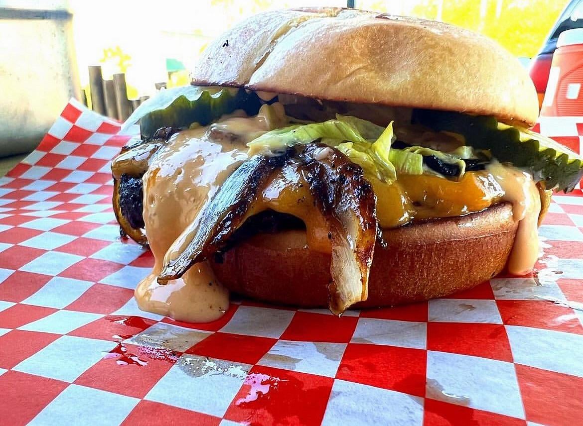 Smashed patty but not paper thin, mid-well. sharp ched, grilled onions, homemade dill pickles, sriracha garlic mayo. Sprinkle of lettuce wasnt needed. by pocket267s Dining and Cooking