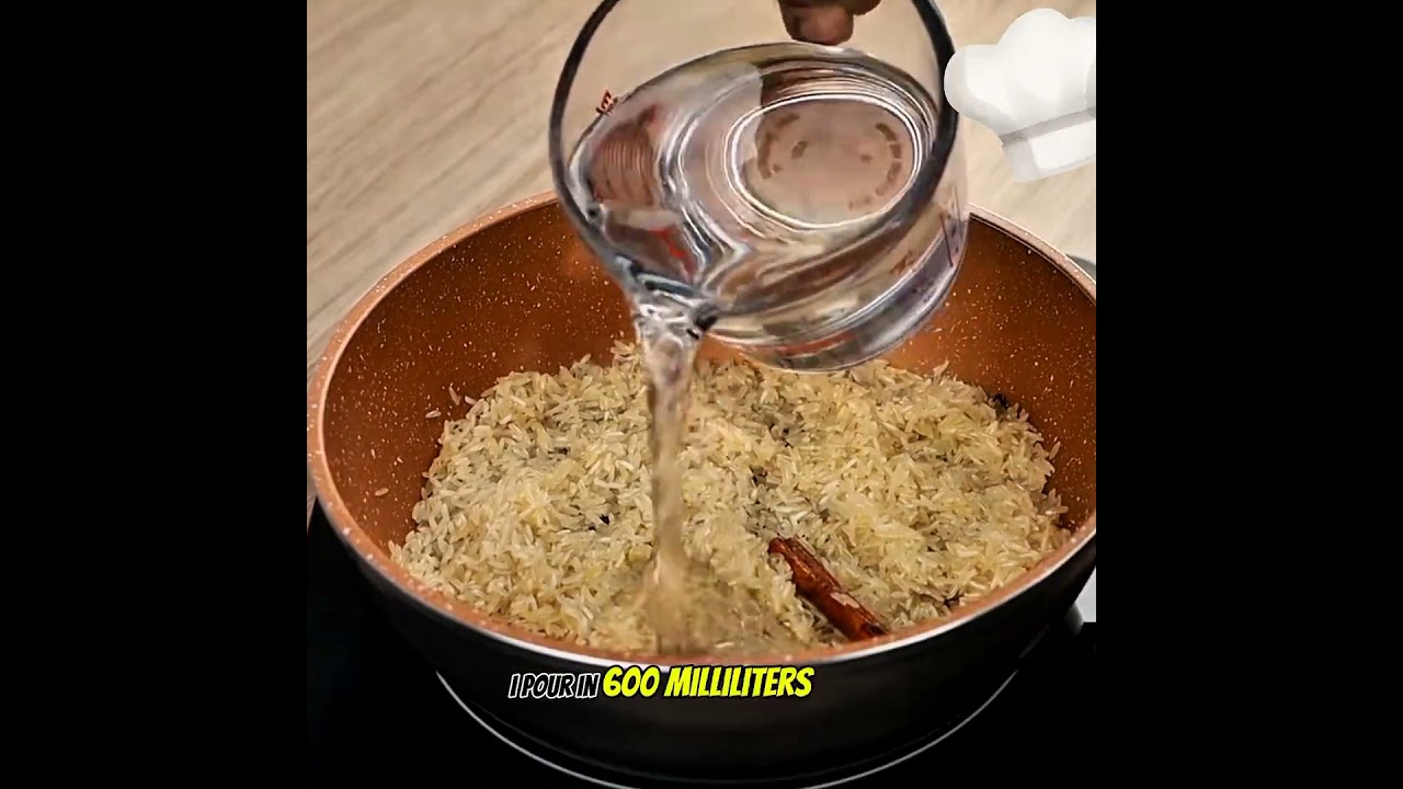 Pour in 600 ml water, cover, and cook until the liquid is fully absorbed.