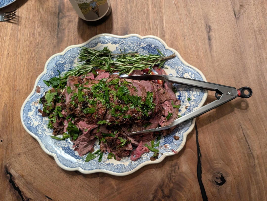 Marinated overnight in rosemary, thyme, mint, lemon, olive oil and prosecco