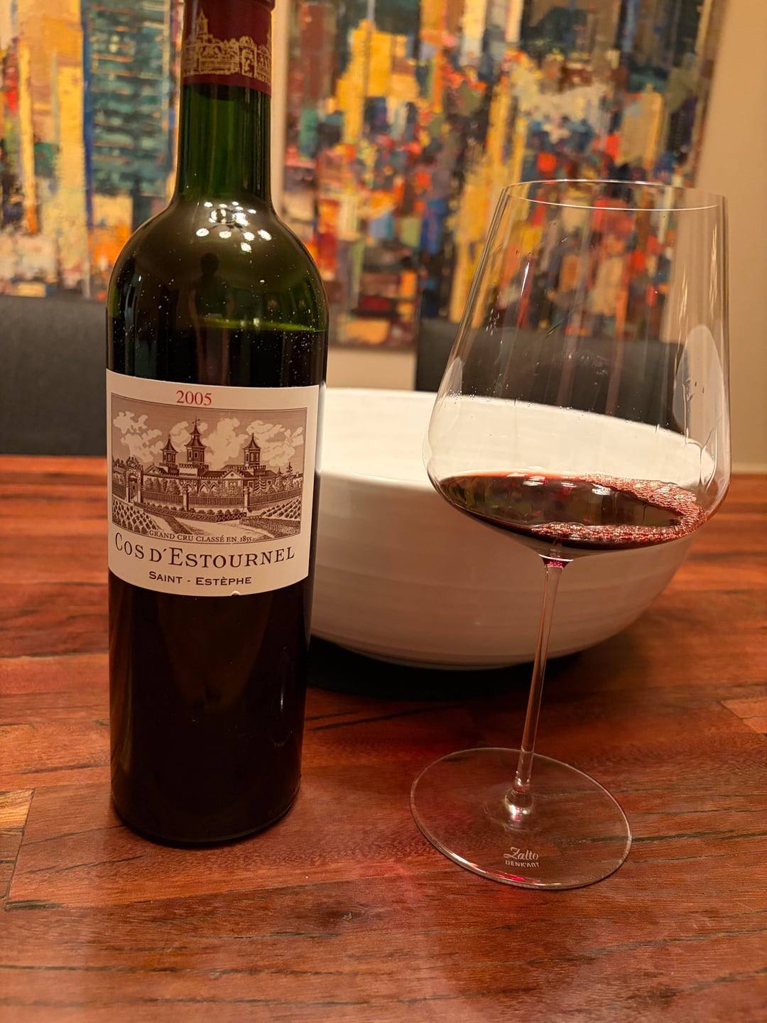 On the palate > it's pretty classic St Estephe – high acid (cool clay soils), high finely grained tannins, silky texture, medium alcohol, medium Body medium plus intensity echoing the nose but with coffee a bit more overt. The finish lingers.