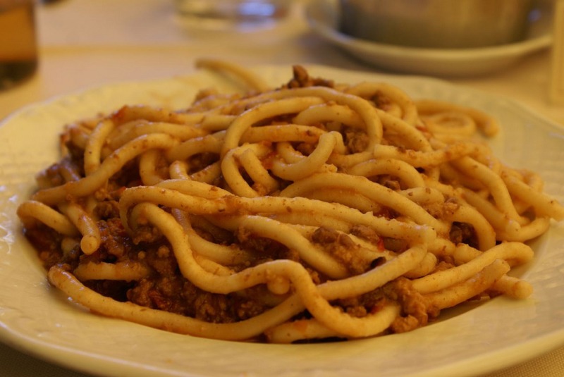 Pici is a Tuscan special that I loved from the first bite. Thick, long, often hand-made pasta, spaghetti-like length pasta. It’s made from properly combined flour, water and eggs and then formed into long ribbons. Pici often handmade dishes is served at the restaurant with a variety of sauces. In shops you can buy pici packaged in the same way as classic pasta.