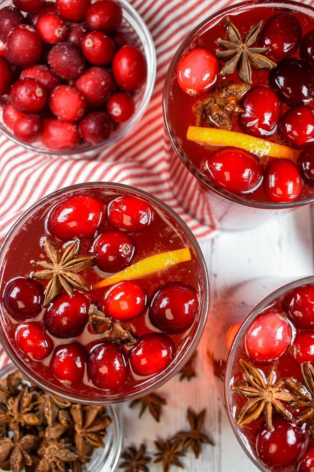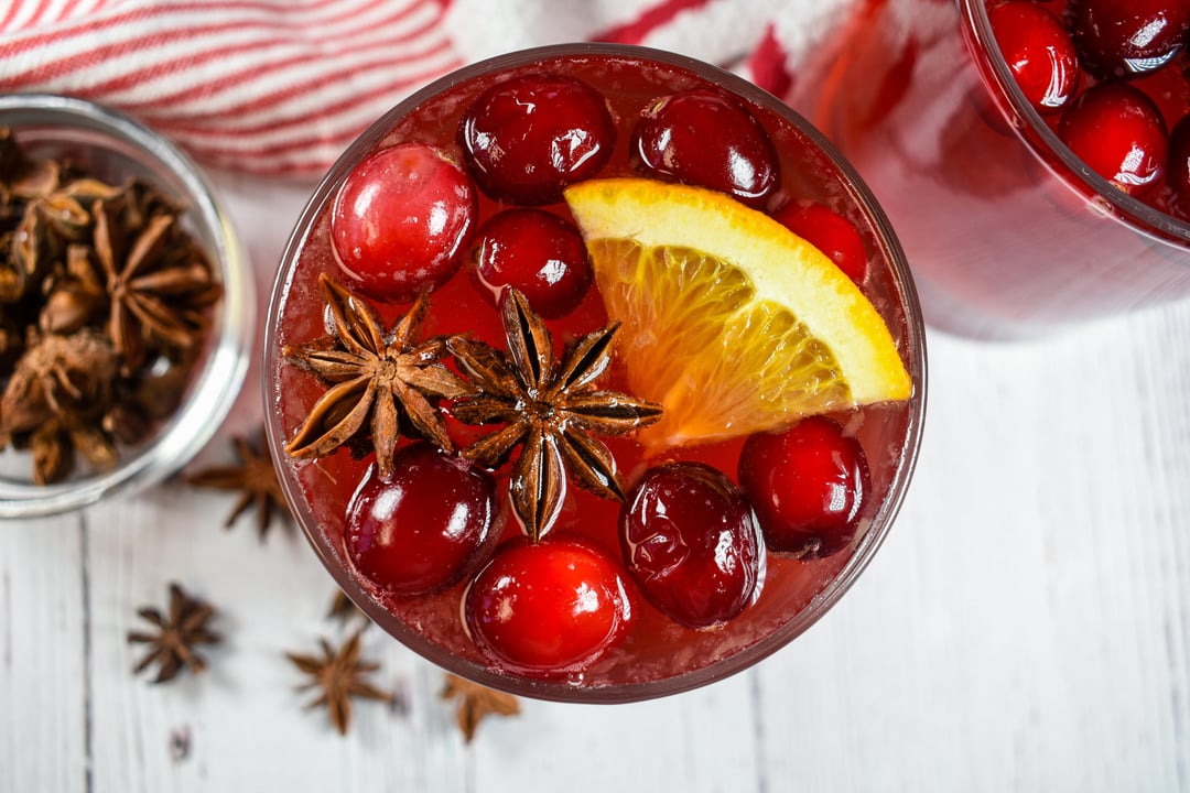 A festive cranberry punch recipe made with ginger ale, orange slices, star anise, and fresh cranberries.
