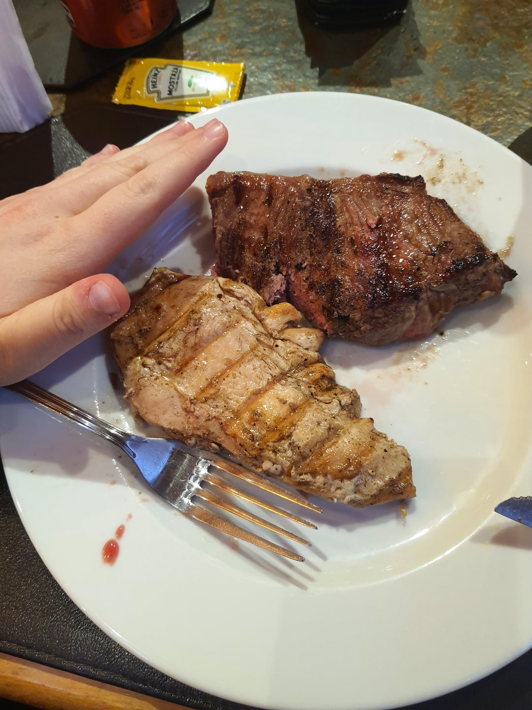 The beef in the first 2 photos is the same, and the white meat is chicken. I don't have my scale with me right now, so I don't know what seasonings they put in it. by ChileanMotherfu– Dining and Cooking