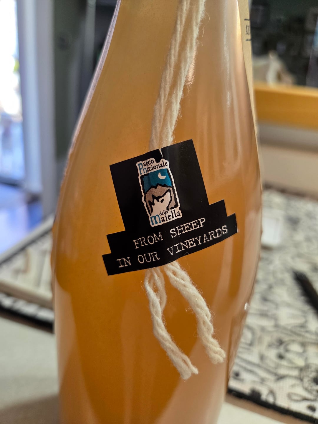 Looks like she grabbed a Lunaria Pinot Grigio Ancestrale, it’s an Italian natural / “orange” style sparkling-ish wine made with minimal intervention.
