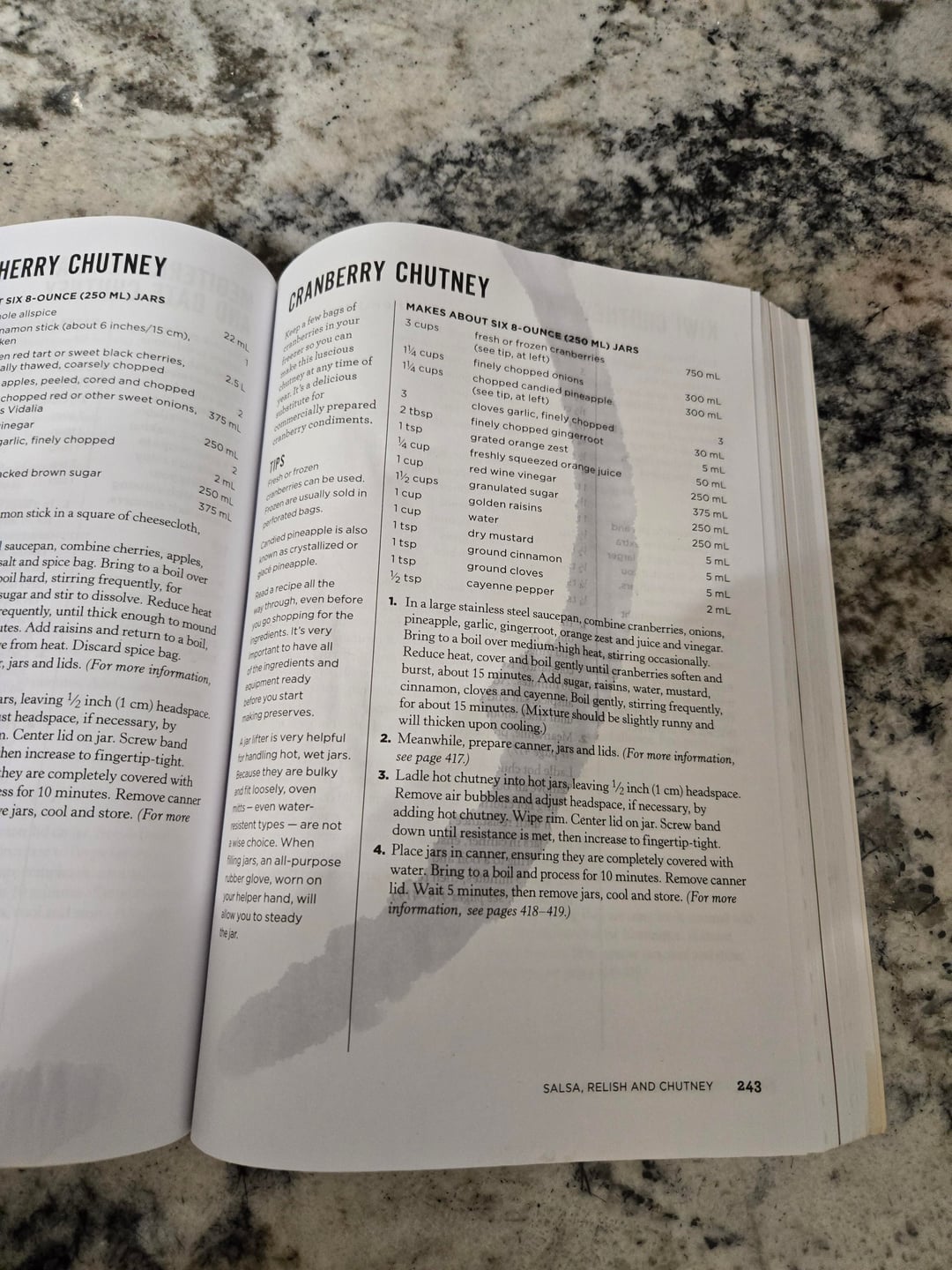 I decided to make cranberry chutney from the Ball Complete Book of Home Preserving.