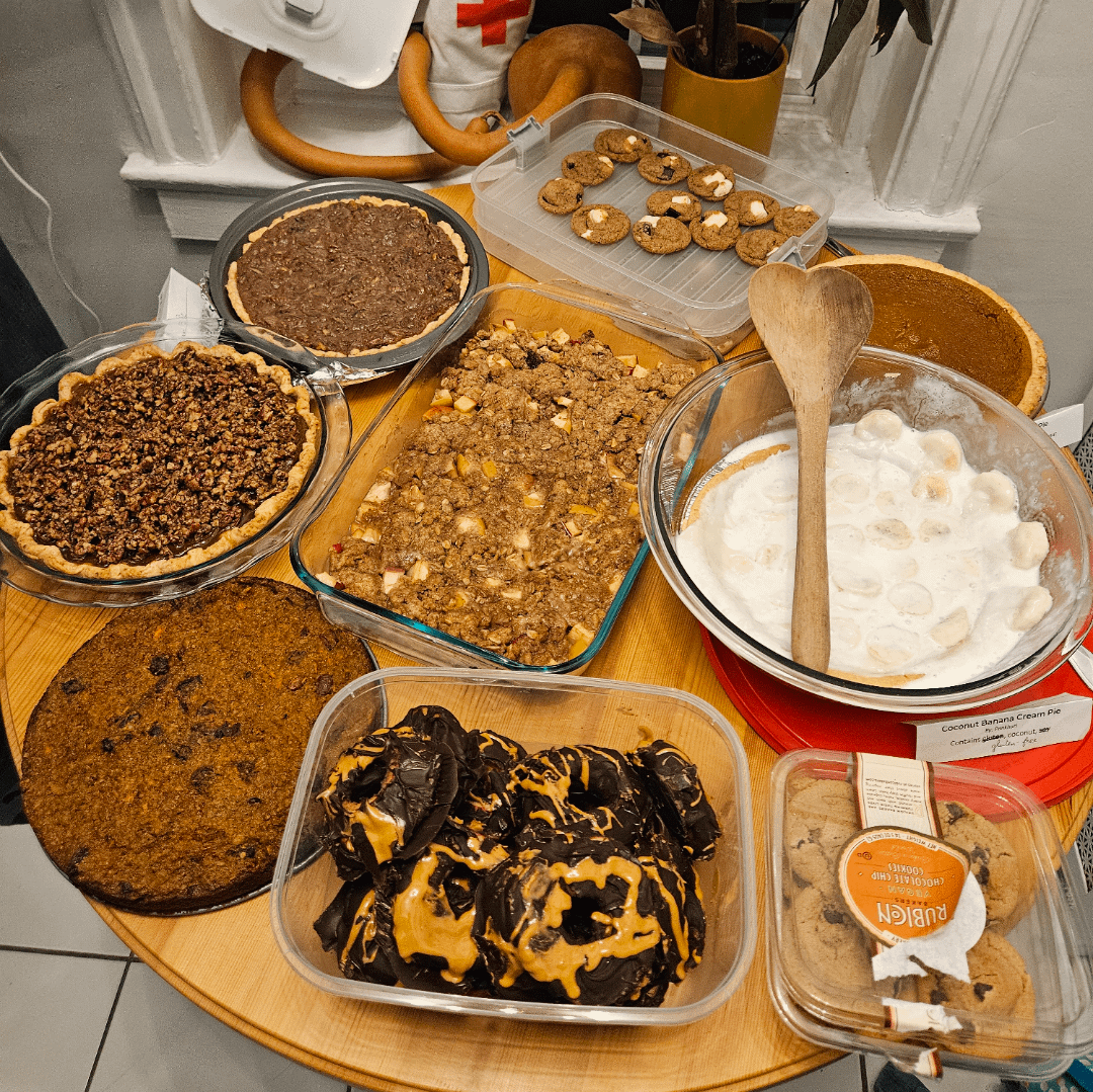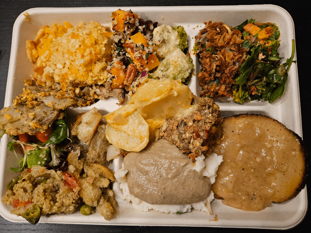 Wantes to show off my vegan Friendsgiving potluck feast! So much great stuff. So grateful to have a wonderful group to share this with, stomach and heart were so full πŸ’›