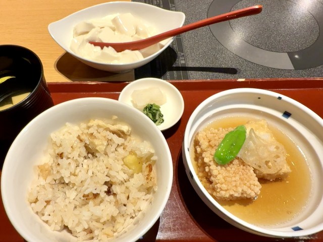 There are a variety of Kyoto-style set meals to choose from, such as the “Fun Meal” (3,960 yen [US$25.15]), the “Kyoto Hot Tofu Meal” (6,490 yen), and the “Tofu and Yuba Meal” (6,600 yen).