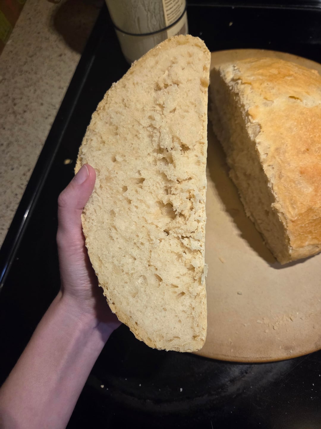 I think it came out for my first time and not using a dutch oven(i used a pizza stone and a metal bowl and a roasting pan of ice and water)