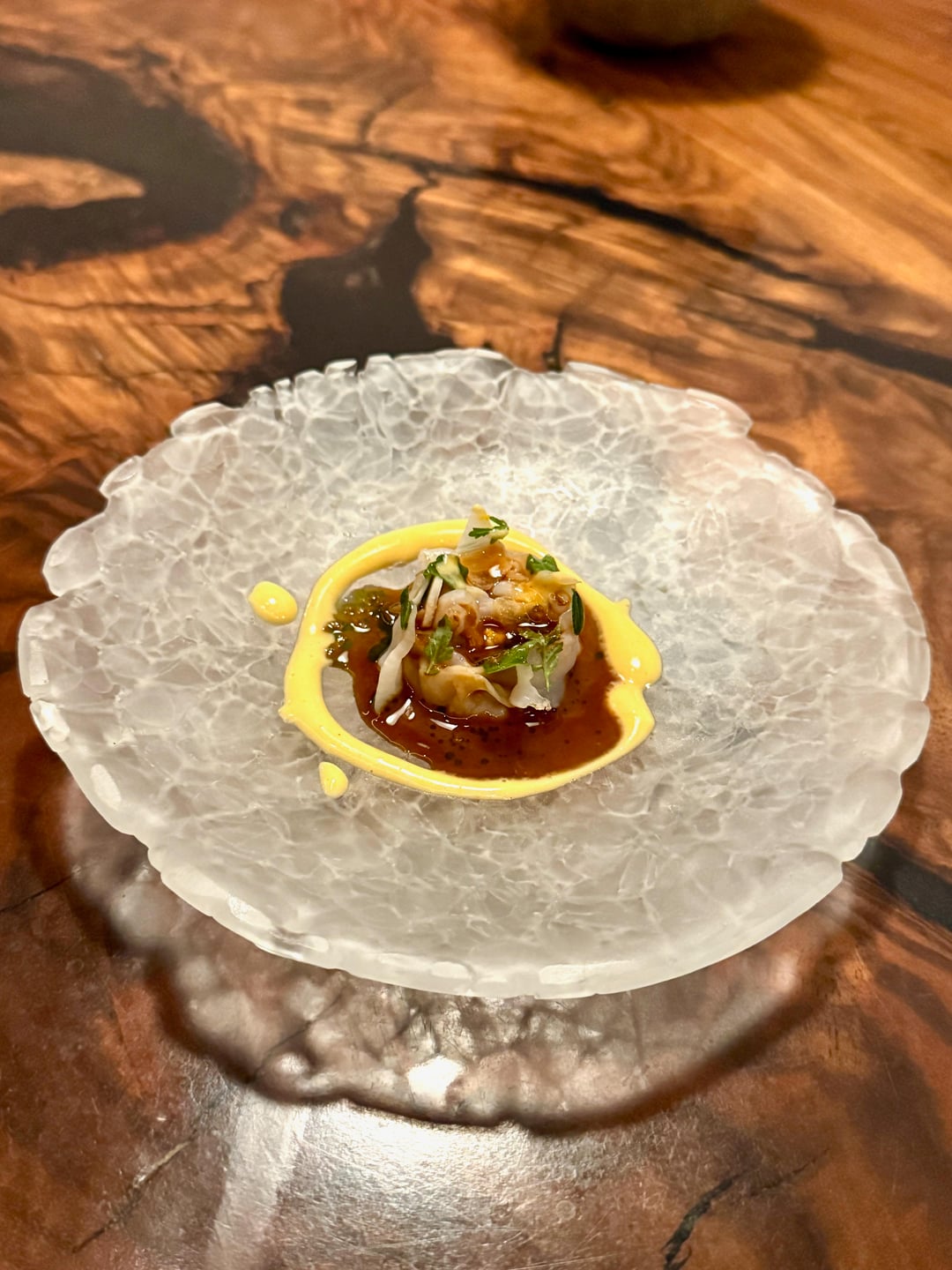 Organized chaos. I didn’t think this would work, but it did. The geoduck was perfectly crisp, and the flavors had a clear progression: first you taste the intense prawn broth, then herbs, and finally a deep mineral finish from the geoduck. I've never tasted seafood layered like this. Decently tasty, very memorable.