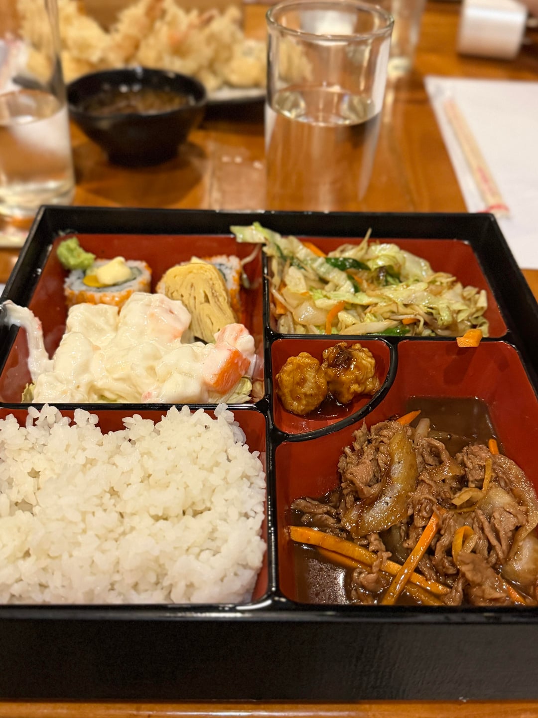 Best japanese resto in our town. Got this 5pc tempura for around $5 and the Beef Tepan Bento is just around $6 🍤 🍱 yum!!