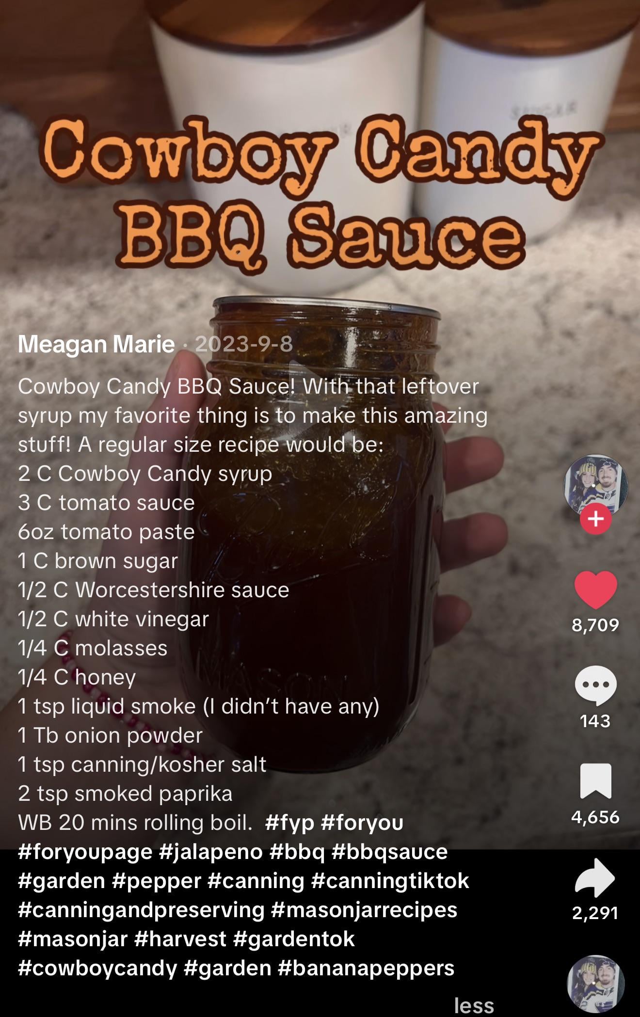 The first ingredient, Cowboy Candy syrup, is the leftover syrup from making candied jalapenos. It was made with 3 cups of white vinegar and 5 cups of white sugar.