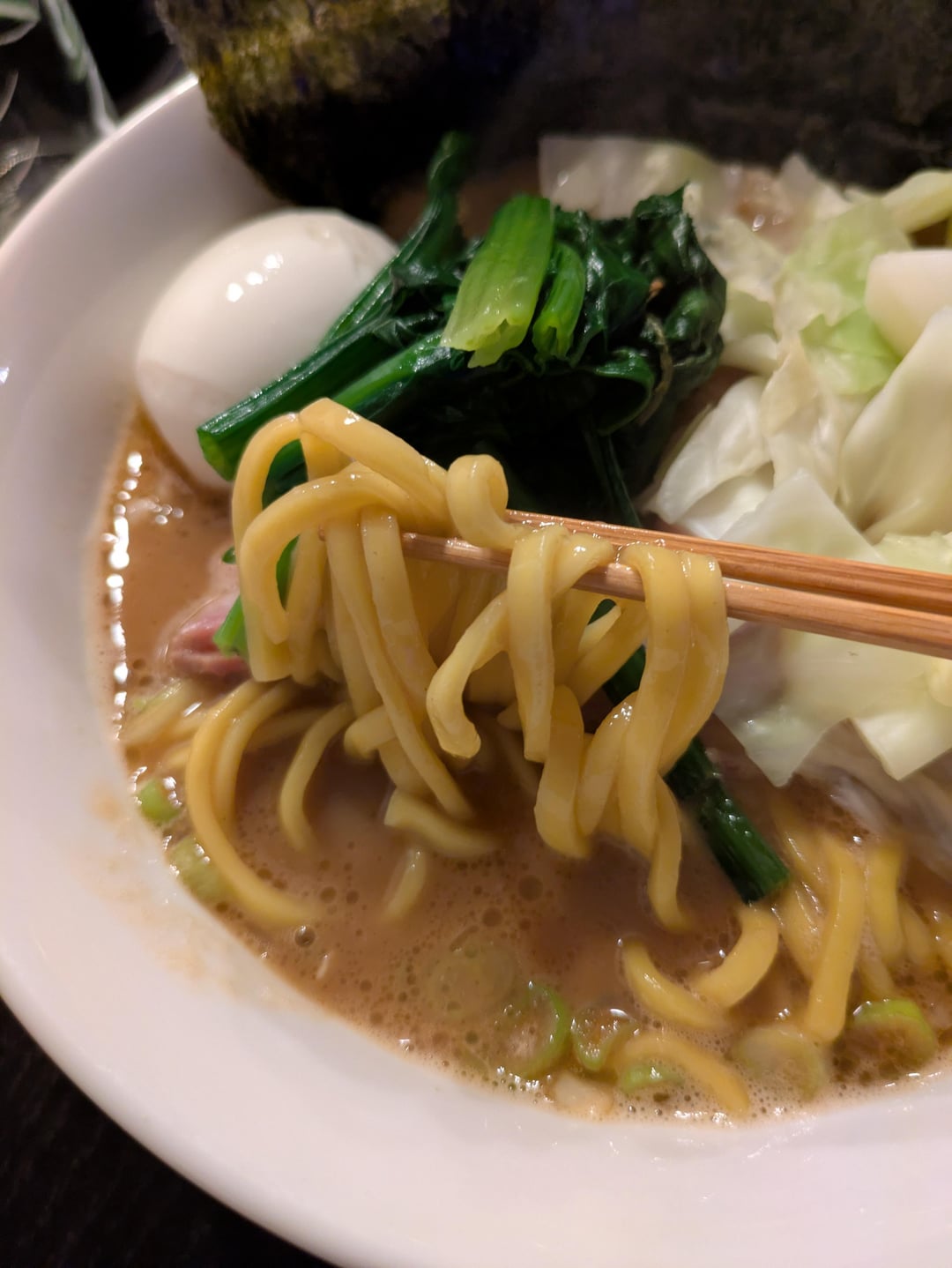 Broth was easily the star here, I used a mix of spent bones from past ramen (frozen) and fresh bones. So creamy. Blanched cabbage goes so well with this kind of ramen, will add it again!