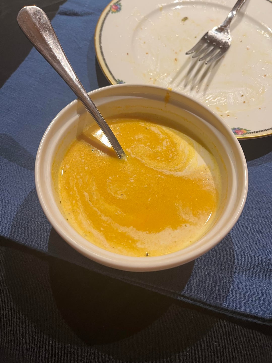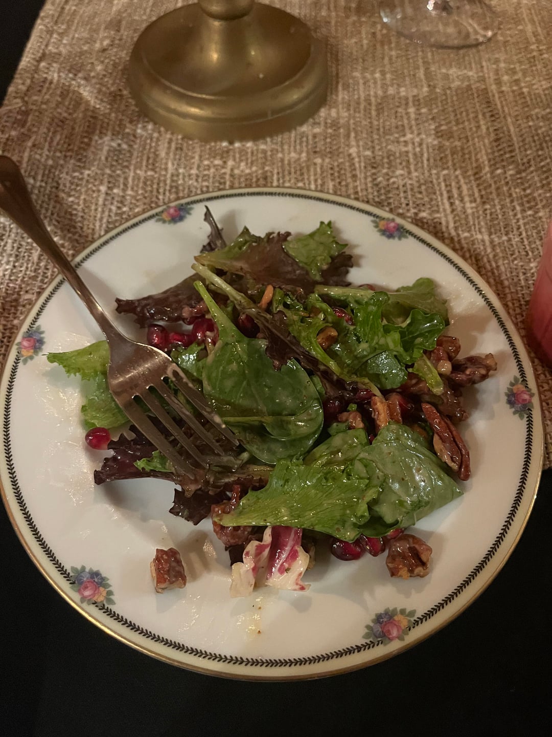 Hosted my first dinner party- steak au poivre with broccolini and garlic mashed potatoes, spring salad mix with a roasted lemon vinaigrette pomegranate seeds and toasted pecans, carrot and ginger bisque, lemon honey ricotta crostini, and poached pears with sticky toffee pudding and crème anglaise