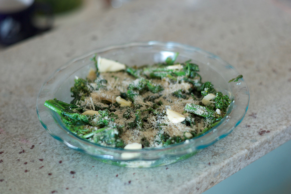 Turn off the heat, and add the preserved lemon and Parmesan. Transfer to the prepared dish, top with bread crumbs, dot with butter, and place in the hot oven until the bread crumbs turn golden. Do not overcook or you’ll lose the color of the greens.