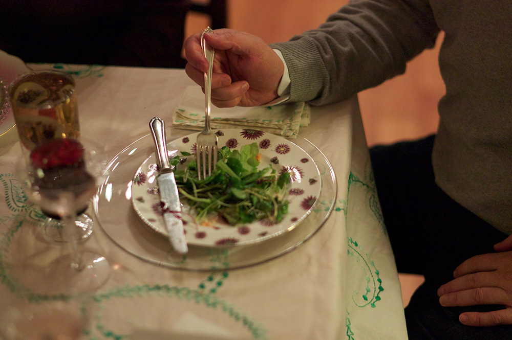 Somehow, against my better judgment—and against Salter’s injunctions that hostessing should be casual, graceful, and seemingly off the cuff—this became a plated five-course meal for fourteen people, plus food for children, who had to be served on picnic blankets on the floor. By the time the prep was over, I was grateful for the suggestion that the food could be only “passable” as long as the wine was “good.” I was also grateful for the slipstream of consciousness, something Salter writes about so well, which dictates that my guests would eat, drink, and have a good time, yet would forget most of it, retaining only “fragments, like the half of a paper napkin … on which they had both written words,” as Salter wrote of the lovers’ story in A Sport and a Pastime. The rest will drift off “into the distances of life … all that was lost in them.”