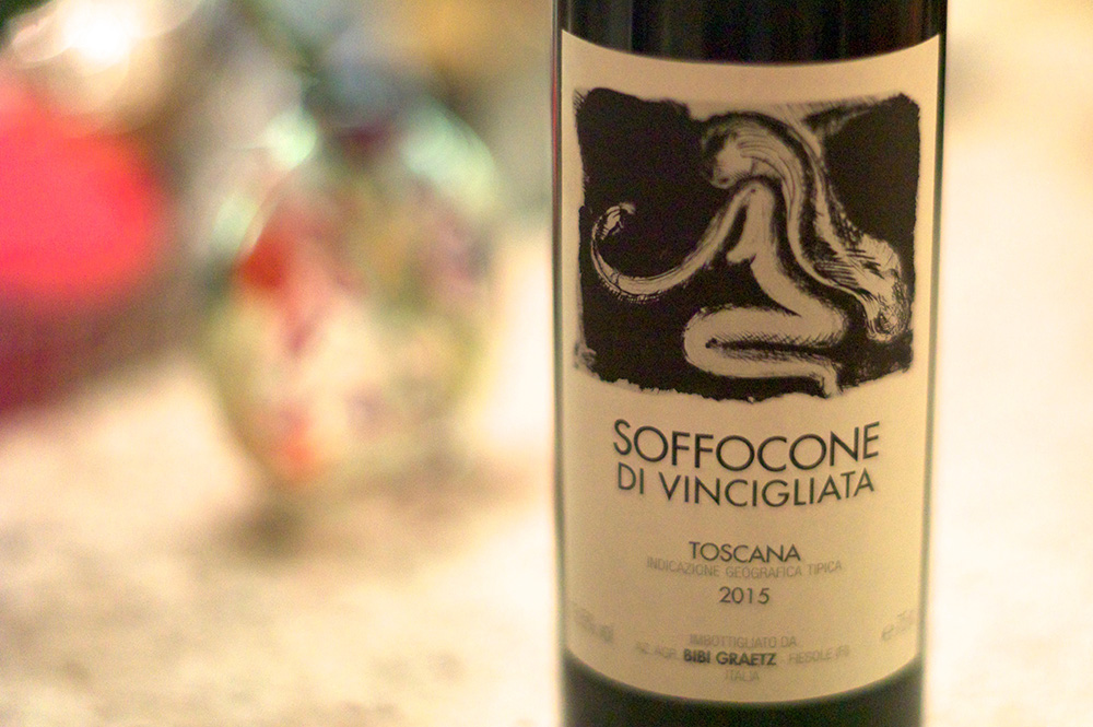 “A recipe called polpettone alla Toscana deserves a vin Toscana,” Zona said. He suggested this one made from Sangiovese, a grape known as “the noble grape of Tuscany.” The winemaker, Bibi Graetz, is the kind of glamorous character Salter would have been hanging out with in his expatriate days: Graetz’s paintings adorn his wine’s labels, and his father is the Swiss Israeli sculptor Gideon Graetz. This bottle’s name, “Soffocone di Vincigliata,” contains a sex joke in its title—soffocone, in local slang, is a practice the lovers in A Sport and a Pastime explore for the first time (see the label art below).
