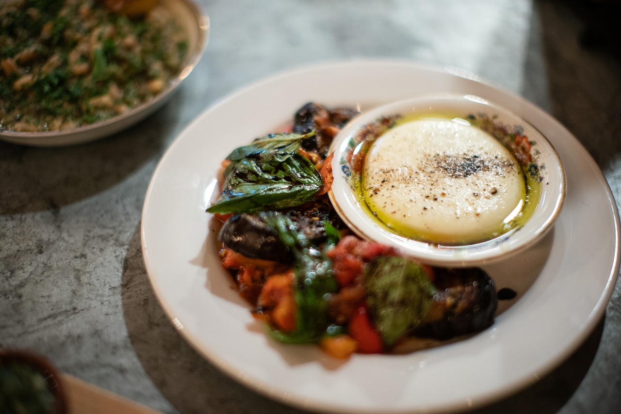 Seated near the back, it quickly became clear that Miriello and his team are dead set on making sure guests are well fed by the time they go home, starting with the complimentary rounds of focaccia and bomba oil, an oil-based dip blending charred eggplant and roasted red peppers. We started with a generous plate of pink prosciutto, grilled strips of pizza bianca, ripe pear and a slab of gorgonzola ($17). Late-summer tomatoes and Jimmy Nardello peppers running with aged balsamic and a pincushion-shaped round of house-pulled mozzarella ($16) came next. One more bite of tomato, another slab of cheese on bread and you’re almost full before the salads arrive.