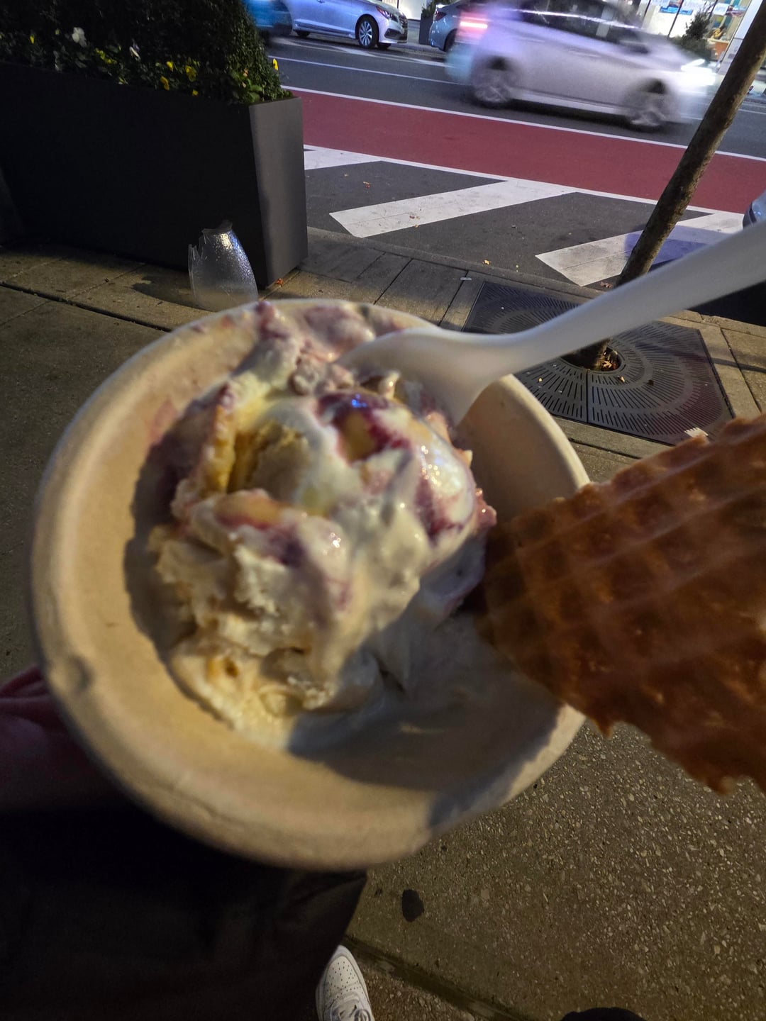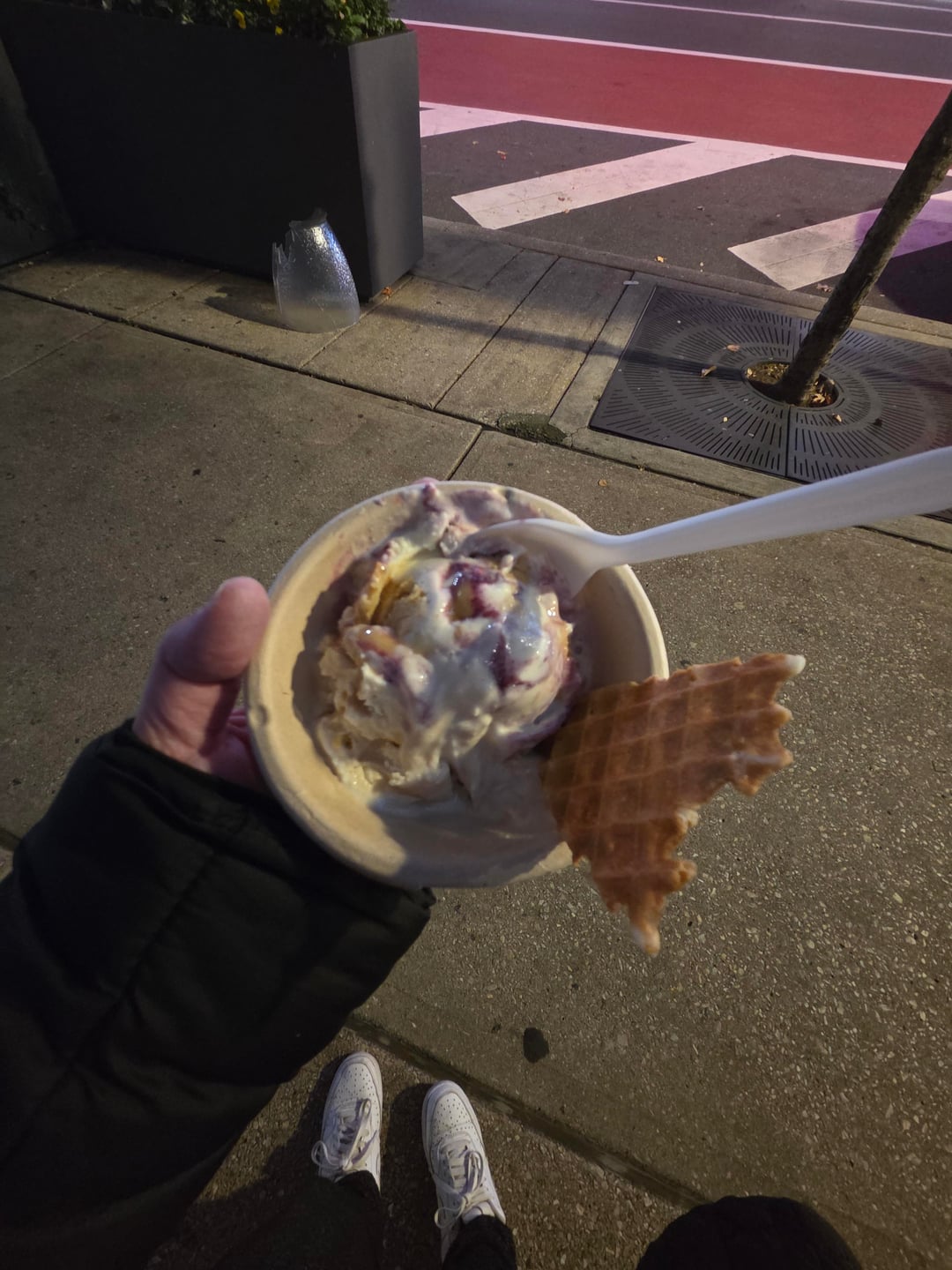 Sorry my phone was on 1% and camera was not focusing but this ice cream was 10/10. No notes! It reminded me of sour patch ice cream, it was vanilla base with lemon and blueberry and vanilla cake pieces. My god it was good. I don't know why they don't sell it in pints. I got it at Jeni's ice cream shop in Philly.