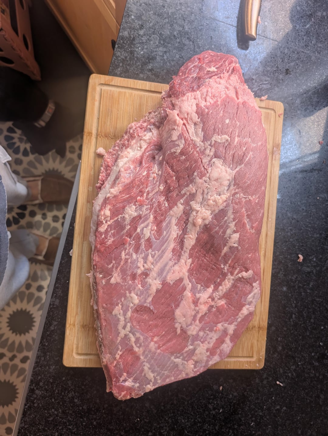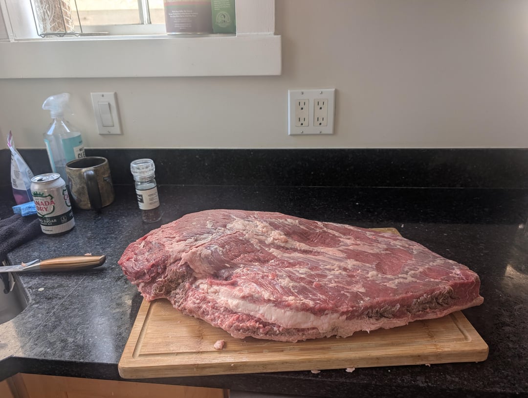 Once you’ve done a few of these, you’ll realize that with a brisket, a certain amount of fat is GOOD. In fact lots of bbq joints have both “moist and regular” when you order a brisket sandwich or sliced brisket.