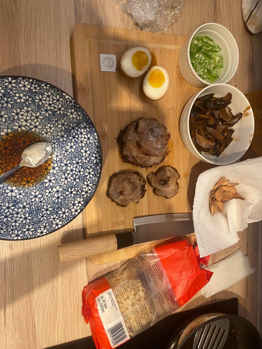 – pork shoulder chashu, which fell apart because i tried to roll it… And after that, cut it.. Still, tasted delicious
