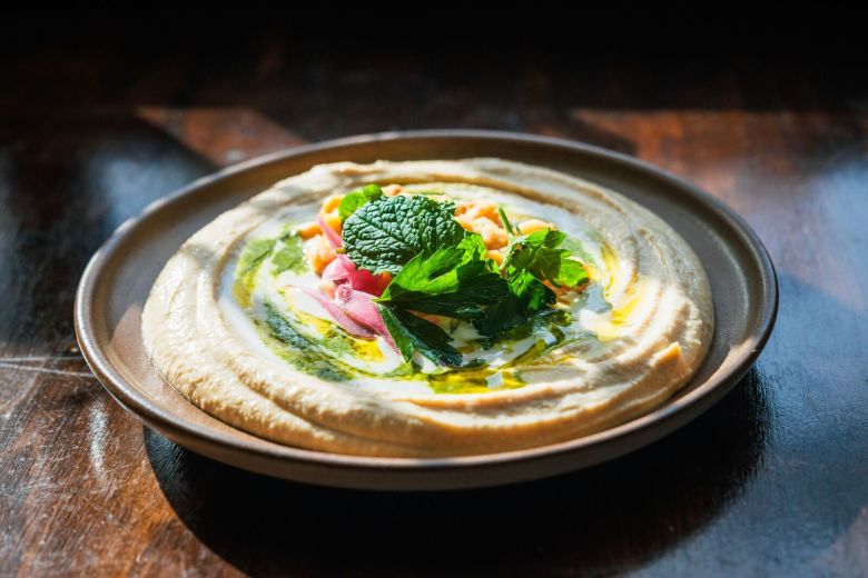 And of course, there’s the food. The cafe’s menu will feature a rotating selection of Mediterranean delights, changing “daily to weekly” depending on the seasons. But a few things will remain constant, including the hummus, which is all over the menu. Uqbar’s version is lemony and garlic-packed and achieves a beautiful texture with the addition of ice, which helps aerate the dip as it’s being blended.