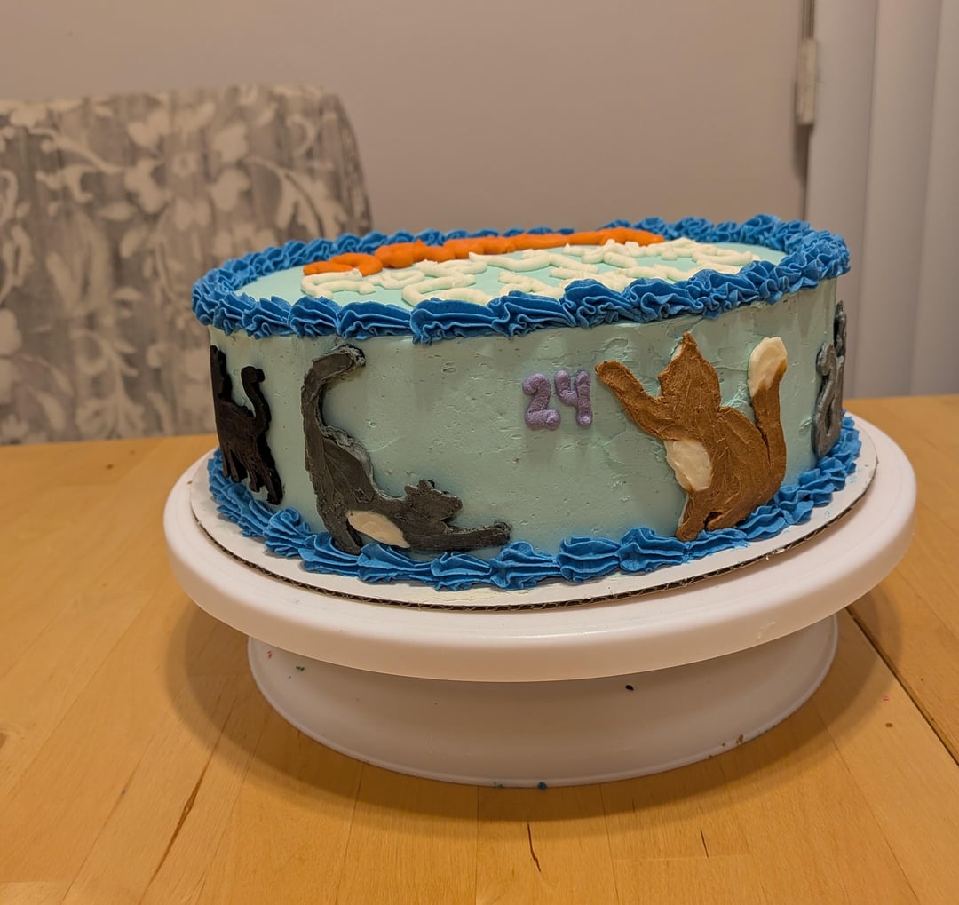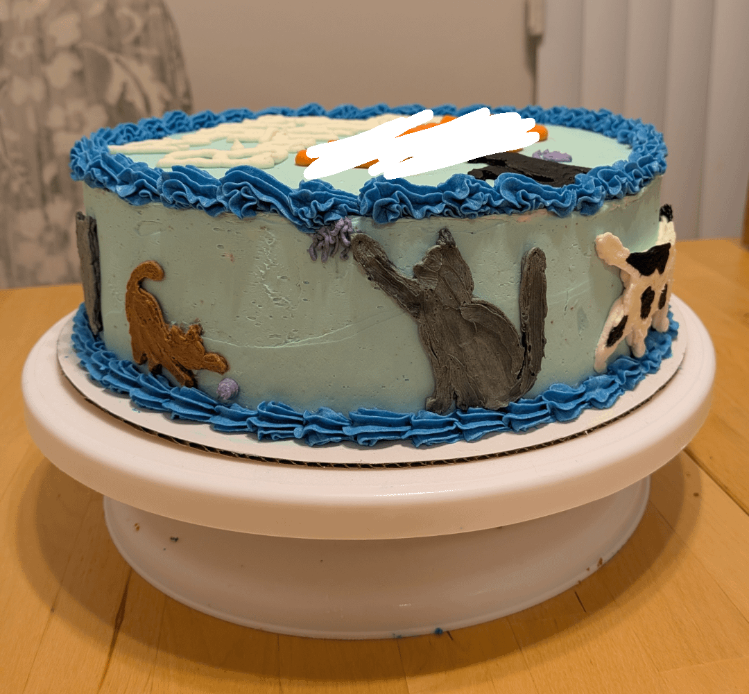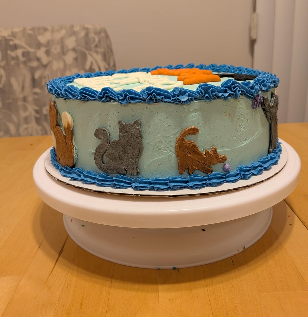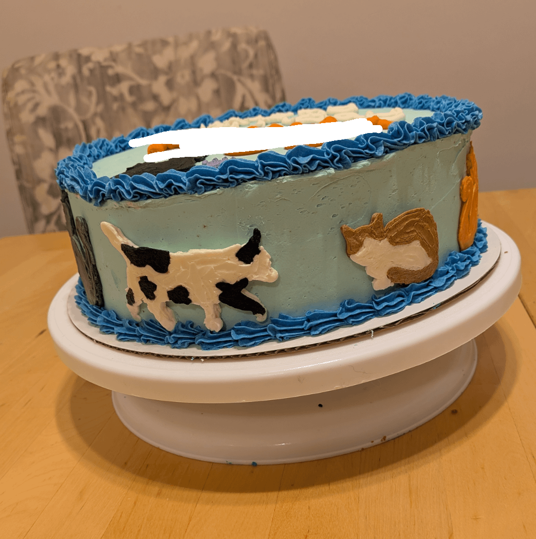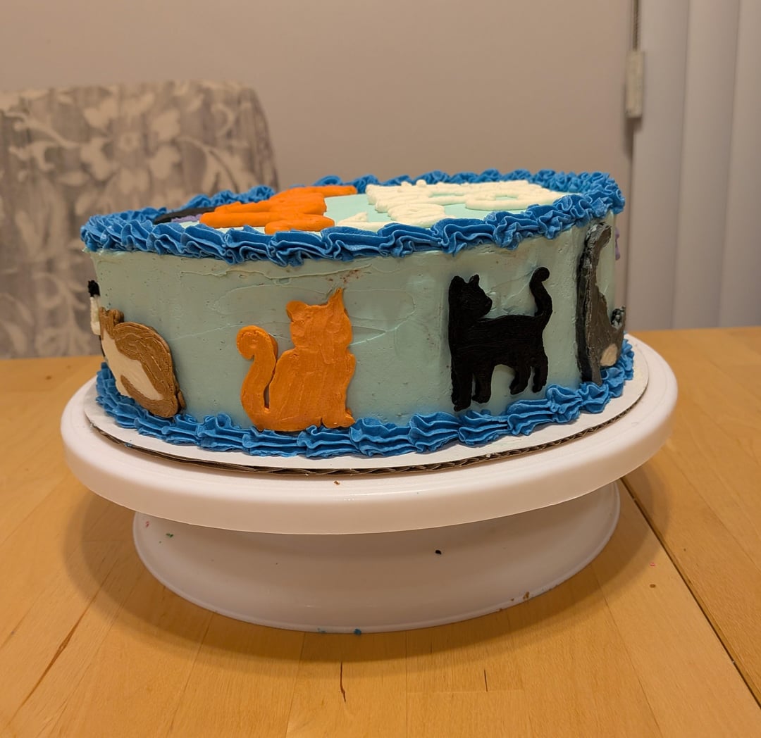I'm so happy with how it turned out! A For Goodness Cakes bake, so name removed for privacy!by Mini_Pizza23 6 Comments Pup_Havoc 5 hours ago Purrfect execution😁👍 cakerycat 4 hours ago Oh my gosh this is adorable!!! You did such a great job!! 👏 soccerkool 4 hours ago that’s very cute!! Did you transfer the cats to the cake or or directly pipe them onto the cake? SmokyGreenflield-135 4 hours ago LOVE! ChiiChan87 3 hours ago So adorable! married2nalien 3 hours ago Beautiful!
