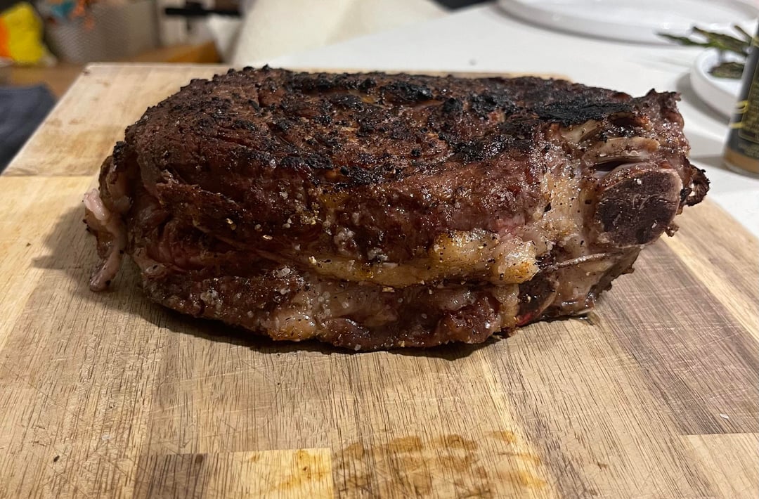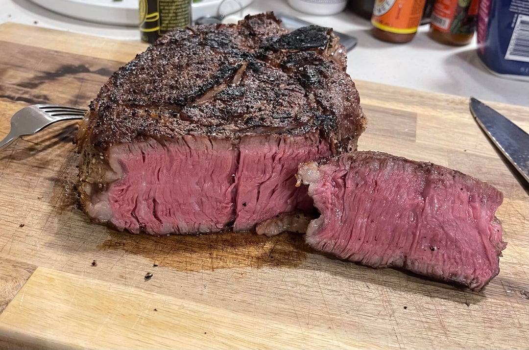 Usually SV ~1.5in cuts of NY strip and other leaner cuts at lower temp, but decided to try this 3lb 2.5in monster of a ribeye today. Went 134F for 2.5h followed by ice bath for 3 minutes, patting dry, and throwing it on a hellishly hot grill (and torching it). Came out sooooo good.