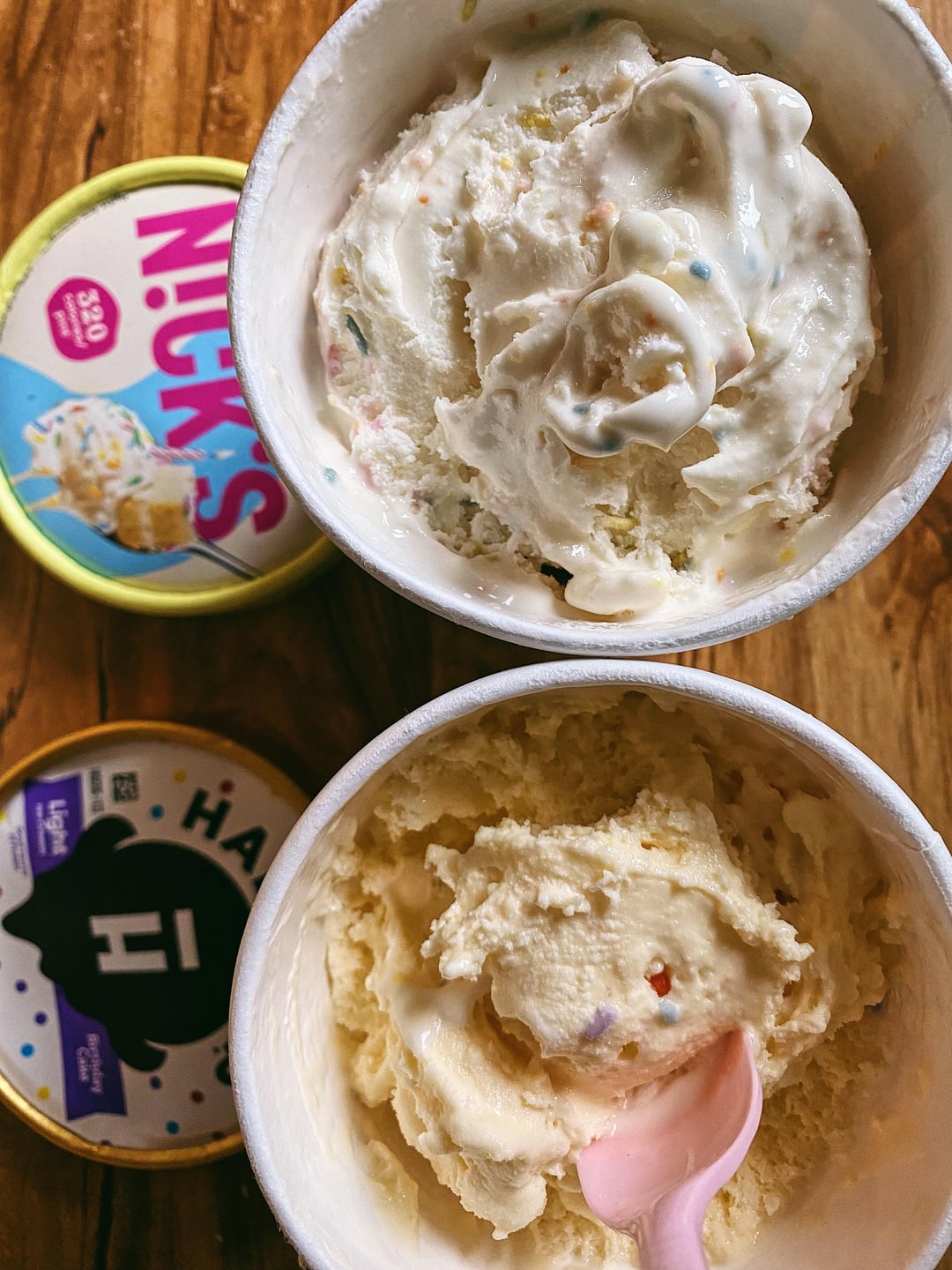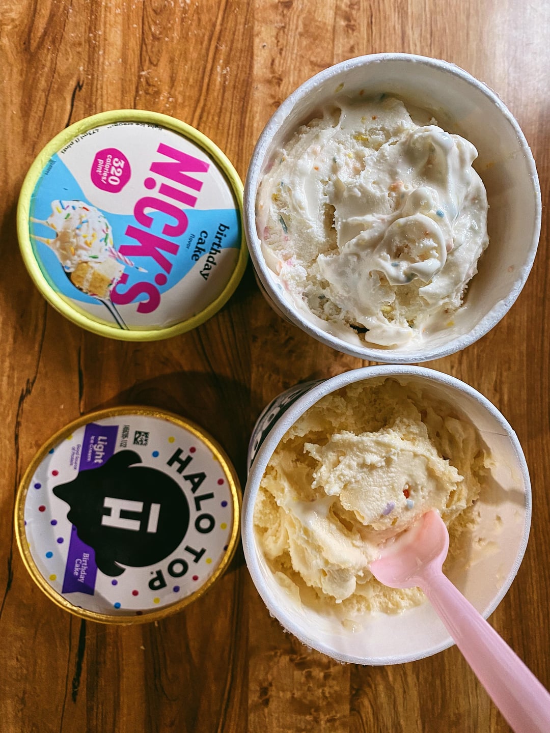 Anyways, I’ll get to it. Usually I prefer Nick’s ice cream texture-wise, but with this flavor they both worked for me, with Halo top possibly edging in for the win. When it comes to that birthday cake flavor, Nick’s was more in your face while Halo Top’s was much more subtle.