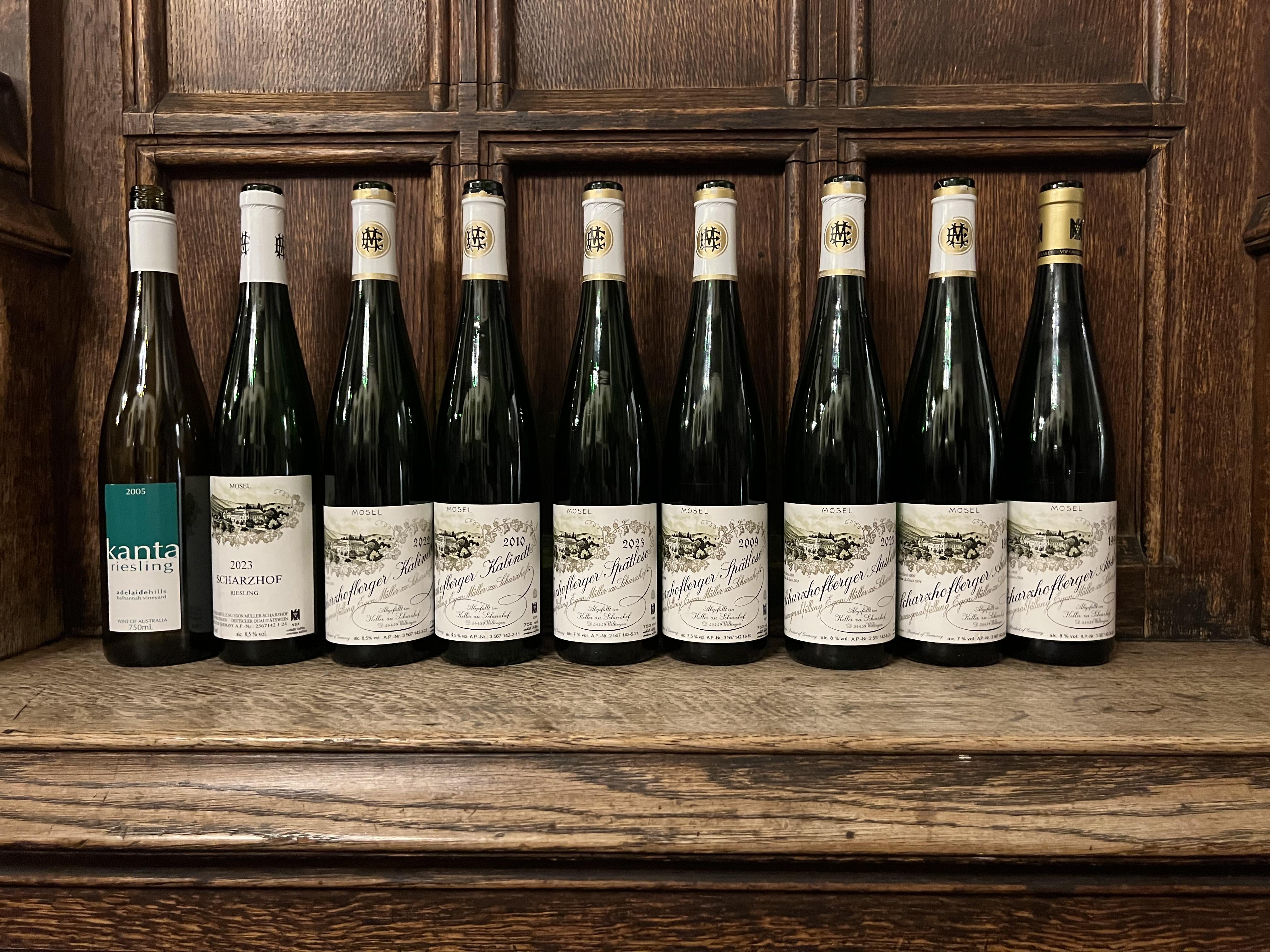 gregorspv 8 hours ago Scharzhof Riesling QbA 2023: honeysuckle, high acidity on the attack, solid finishKanta Riesling 2005: their first Aussie vintage; there is some petroleum; dry, but the acidity is unfortunately a bit flat at this ageScharzhofberger Kabinett 2022: more mineral than the QbA, more petroleum, especially on the attackScharzhofberger Kabinett 2010: wax and raisins; the aging’s paid off!Scharzhofberger Spätlese 2023: some botrytis and a very pleasant anise noteScharzhofberger Spätlese 2009: very elegant, precise, but also moreishScharzhofberger Auslese 2023: a bump in the complexity of the nose with pure elderflower shining throughScharzhofberger Auslese 1997: corkedScharzhofberger Auslese Goldkapsel 1999: the finish lasts seemingly forever