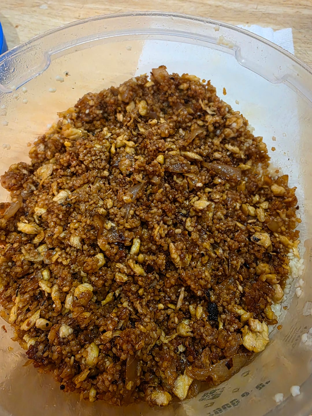 Hmm. Looks like crushed granola you use for toppings, but the finished meal looks like my dog’s vomit after eating her own vomit.