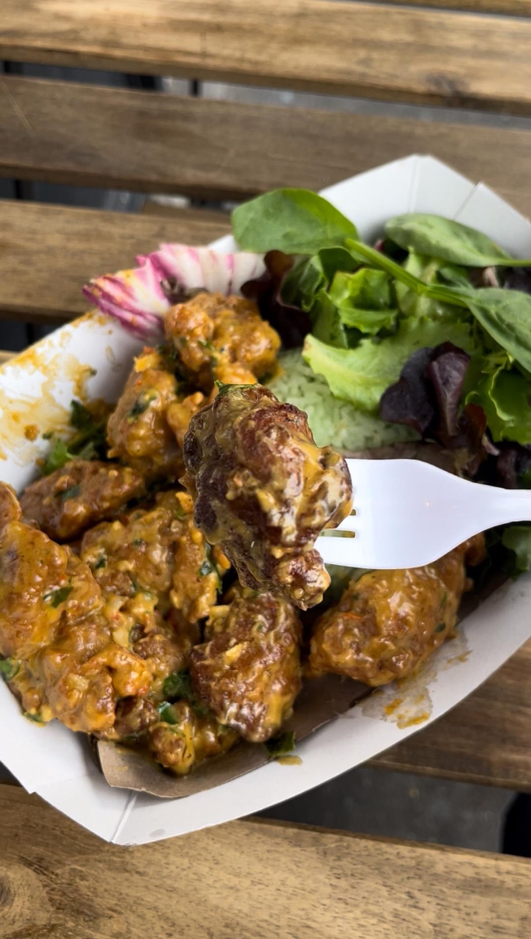 The salted duck egg butter chicken rice was really good. Crispy and tender chicken coated in a savory and creamy sauce. Went really well with the aromatic pandan coconut rice.